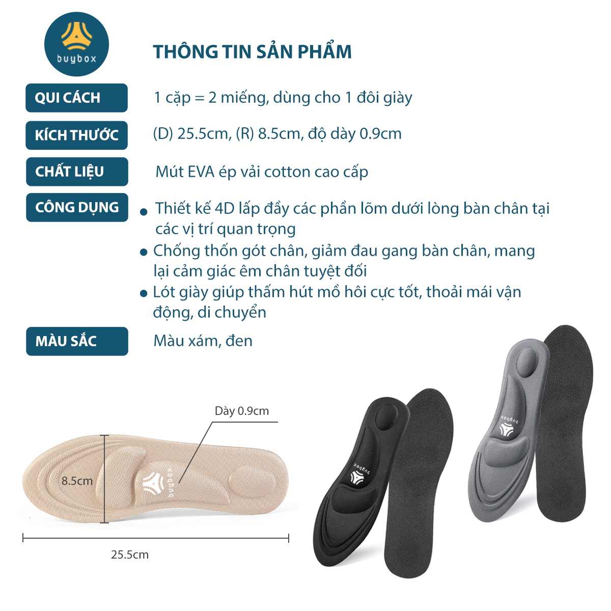 LÓT GIÀY THỂ THAO BUYBOX CÓ THIẾT KẾ 4D LẤP ĐẦY PHẦN LÕM CỦA LÒNG BÀN CHÂN