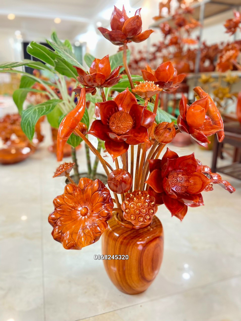 ✨1 bình hoa sen 21 cành ,phong thủy trang trí phòng khách ,phòng thờ bằng gỗ hương đỏ đẹp lung linh