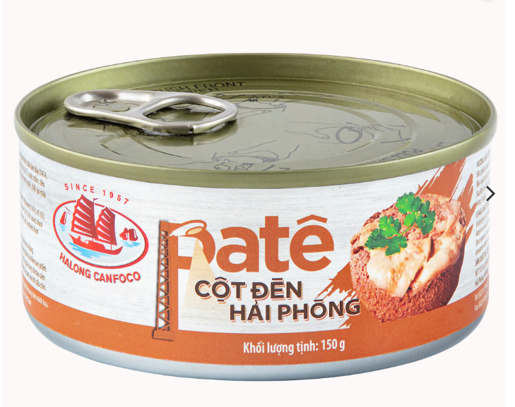 MÓN NGON THƯƠNG HIỆU - Sản phẩm: Patê Cột Đèn Hải Phòng - Thương hiệu : Halong Canfoco. - Khối lượng: Hộp 150g. ️ Sản phẩm được sản xuất hoàn toàn ở Việt Nam. CHUẨN