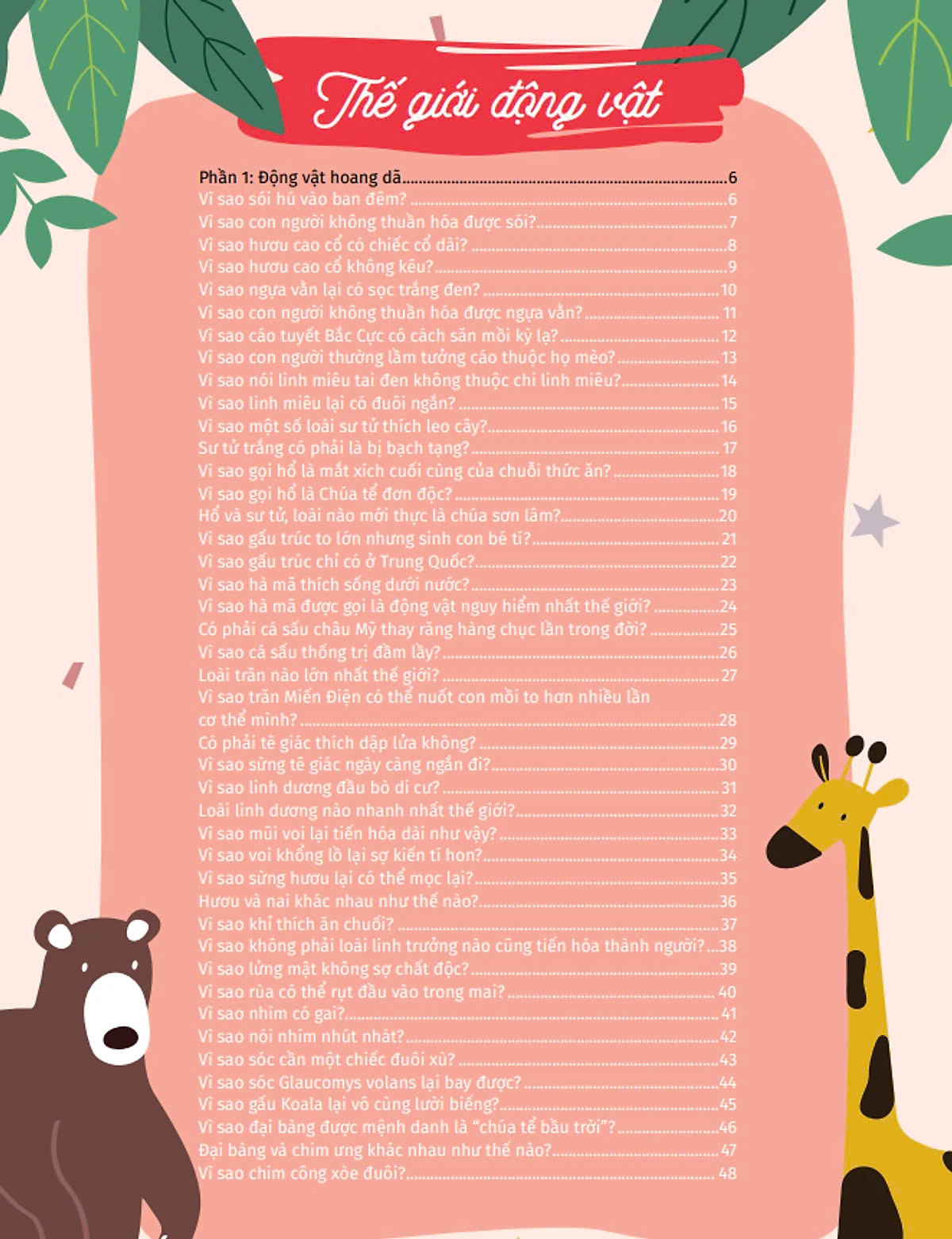 Cuốn Thế Giới Động Vật (Động Vật Hoang Dã và Động Vật Nuôi) thuộc bộ sách 10 Vạn Câu Hỏi Vì Sao mang đến kiến thức phong phú về thế giới động vật. Sách giải đáp các câu hỏi như cách các loài hoang dã sinh tồn trong tự nhiên, hành vi săn mồi, tập tính di cư, và đặc điểm sinh học của chúng. Đồng thời, nội dung còn giới thiệu về các loài vật nuôi quen thuộc, vai trò của chúng trong đời sống con người và cách chăm sóc chúng. Với hình minh họa sống động và cách diễn đạt hấp dẫn, cuốn sách là nguồn tư liệu bổ ích cho trẻ em và người yêu động vật.