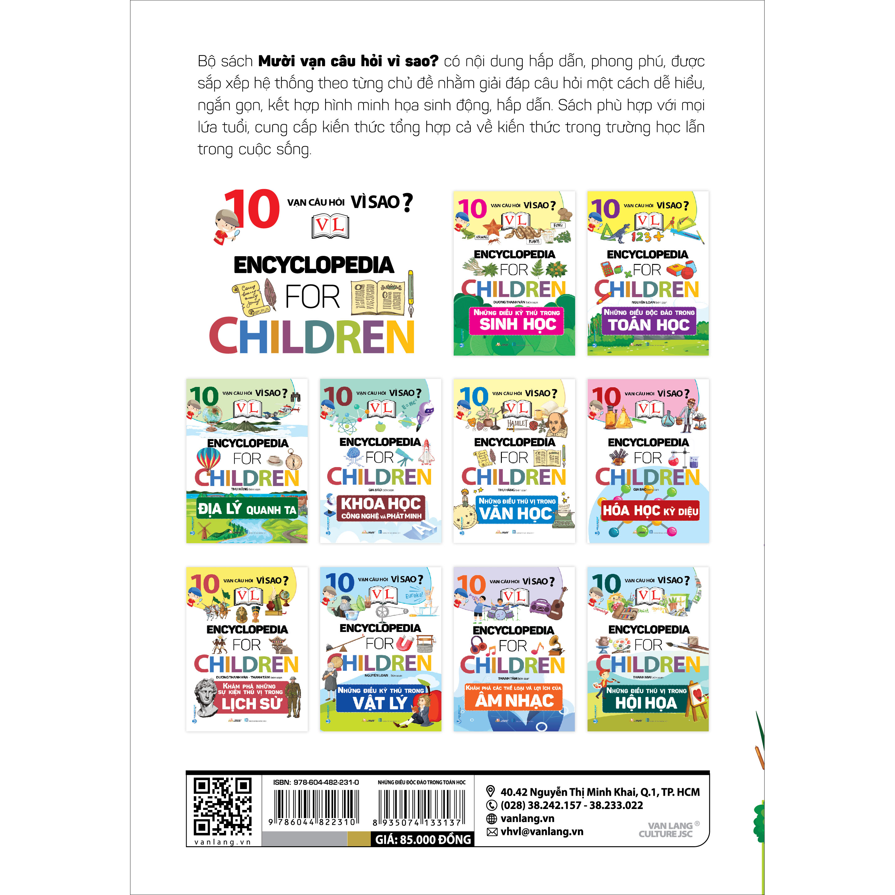 - Mười vạn câu hỏi vì sao - cánh cửa mở ra thế giới tri thức bất tận. Bộ sách không chỉ là một kho tàng kiến thức phong phú mà còn là người bạn đồng hành tin cậy của mọi gia đình. Với những câu hỏi thú vị, những câu trả lời khoa học và những hình ảnh minh họa sinh động, bộ sách sẽ giúp các bạn thỏa mãn trí tò mò, phát triển tư duy và nuôi dưỡng tình yêu với khoa học. Hãy để 'Mười vạn câu hỏi vì sao' đồng hành cùng con trên hành trình khám phá thế giới!