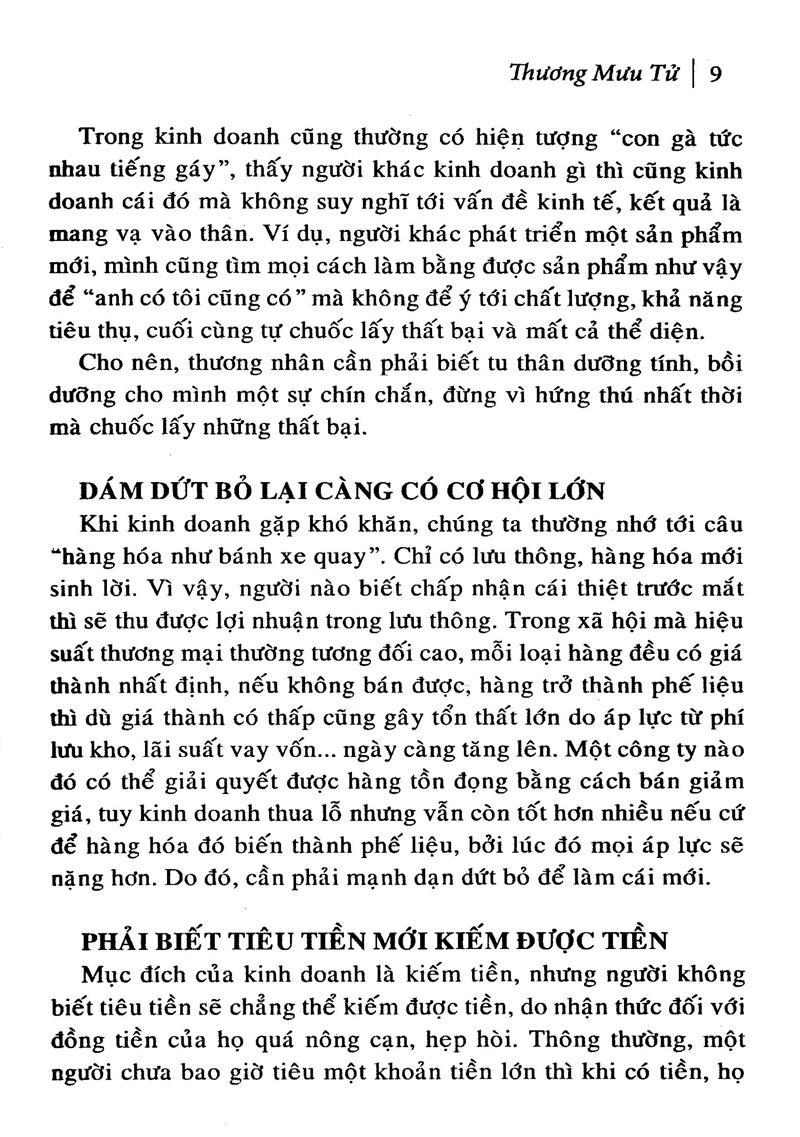 Cuốn sách là tài liệu tham khảo giúp những người mới bước vào ngưỡng cửa kinh doanh có thêm tự tin, hỗ trợ tốt cho công việc kinh doanh của các bạn trong tương lai. Nội dung của cuốn sách được tổng kết từ những tình huống thực tế trong cuộc sống của các nhà quản lý và các ông chủ lớn, hy vọng cung cấp cho bạn đọc một số kỹ xảo và phương pháp kinh doanh trên thương trường. Đồng thời, cuốn sách sẽ là cẩm nang giúp bạn đọc biết được những gì nên làm và những gì không nên làm nhằm thực hiện mơ ước làm giàu của chính mình.