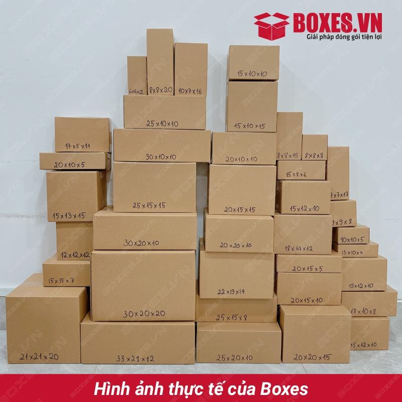 ---------------------QUY CHUẨN KĨ THUẬT---------------------------------------- Kích thước: 20x10x10 cm (kích thước phủ bì) Màu sắc: nâu nhạt Số lớp : 3 lớp - sóng E - dày 2mm (giúp tiết kiệm không gian lưu kho 50%