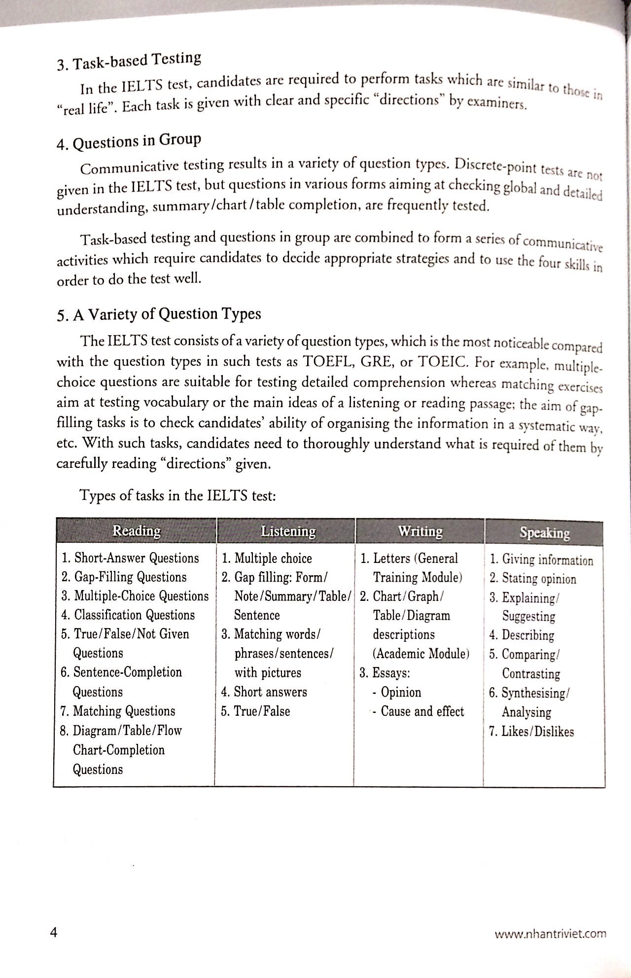 Cuốn sách giúp người học định hướng và làm quen với từng dạng bài của của từng kỹ năng trong một bài thi IELTS. Bên cạnh việc phân tích định dạng bài thi, cuốn