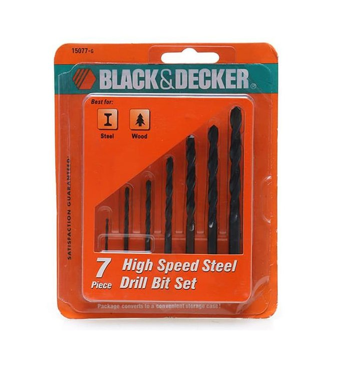 Mua tại TiktokThương hiệu: BLACK+DECKER (MỸ) Hộp mũi khoan kim loại 7 chi tiết Giới thiệu sản phẩm BLACK+DECKER - 15077G Hộp mũi khoan kim loại 7 chi tiết