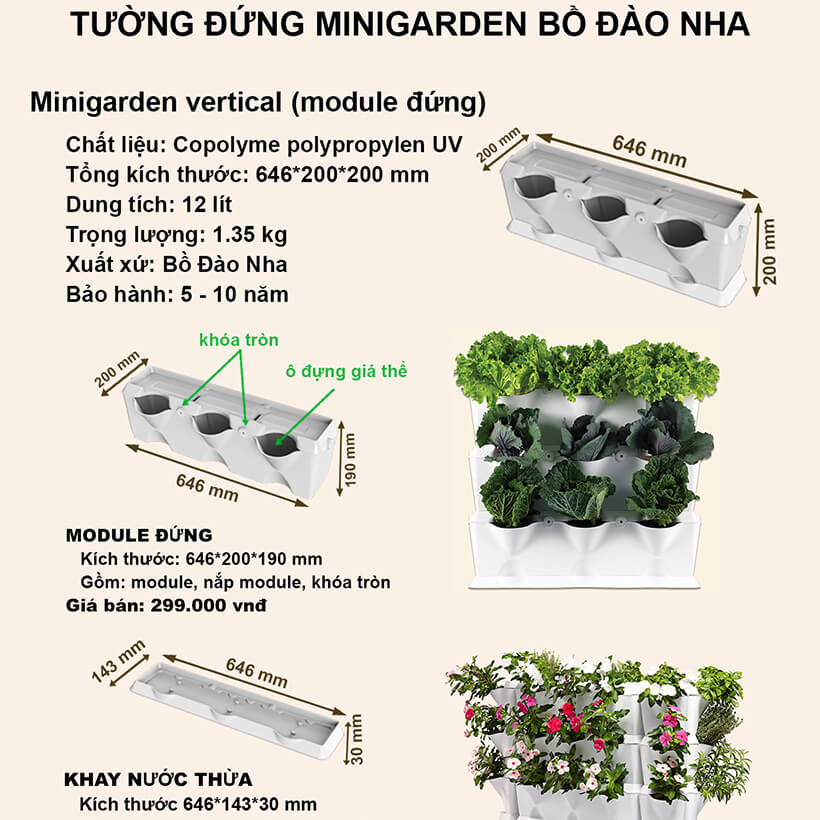KHUNG TRỒNG CÂY ĐỨNG MINIGARDEN VERTICAL (OUTDOOR & INDOOR PLANTS) CHO CÂY TRONG NHÀ, CÂY NGOÀI TRỜI VÀ TRỒNG RAU SẠCH ĐỨNG - Minigarden Vertical nhập khẩu Bồ Đào Nha: Chậu Trồng Cây Đứng ban