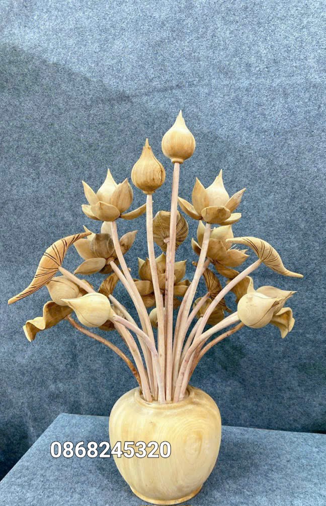 Bình Hoa Sen 21 Cành Gỗ Ngọc Am Thơm Nức Đẹp Giá Xưởng| Xưởng Tượng Gỗ Độc Đáo - 0938410333