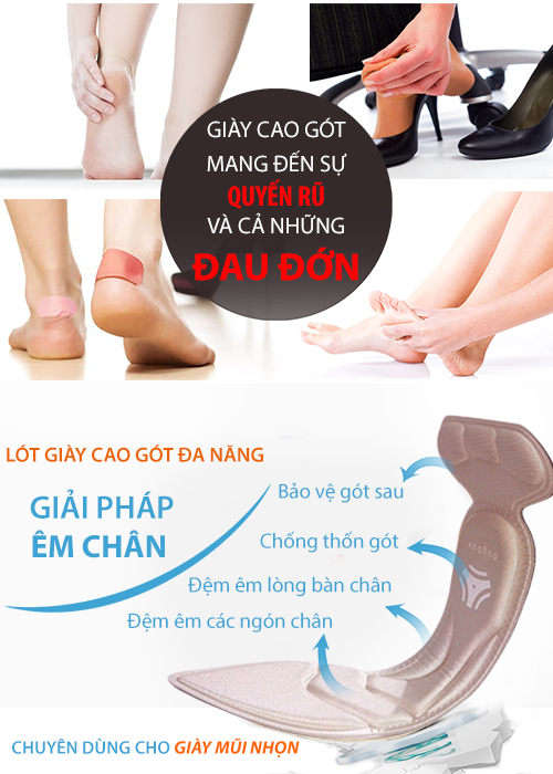 Công dụng tuyệt vời: chống trầy gót sau bàn chân khi mang giày cao gót, giày búp bê; chống thốn gót chân; giảm đau gang bàn chân; mang lại cảm giác êm chân tuyệt đối.