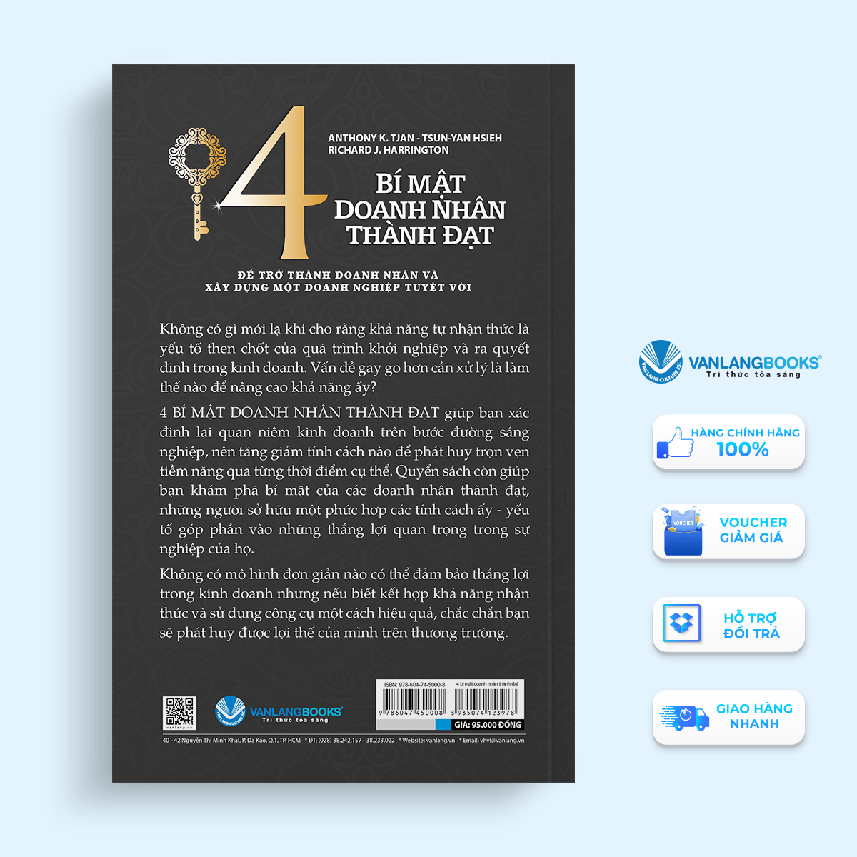 4 BÍ MẬT DOANH NHÂN THÀNH ĐẠT giúp bạn xác định lại quan niệm kinh doanh trên bước đường sáng nghiệp, nên tăng giảm tính cách nào để phát huy trọn vẹn tiềm năng qua từng thời điểm cụ thể. Quyển sách còn giúp bạn khám phá bí mật của các doanh nhân thành đạt, những người sở hữu một phức hợp các tính cách ấy - yếu tố góp phần vào những thắng lợi quan trọng trong sự nghiệp của họ.