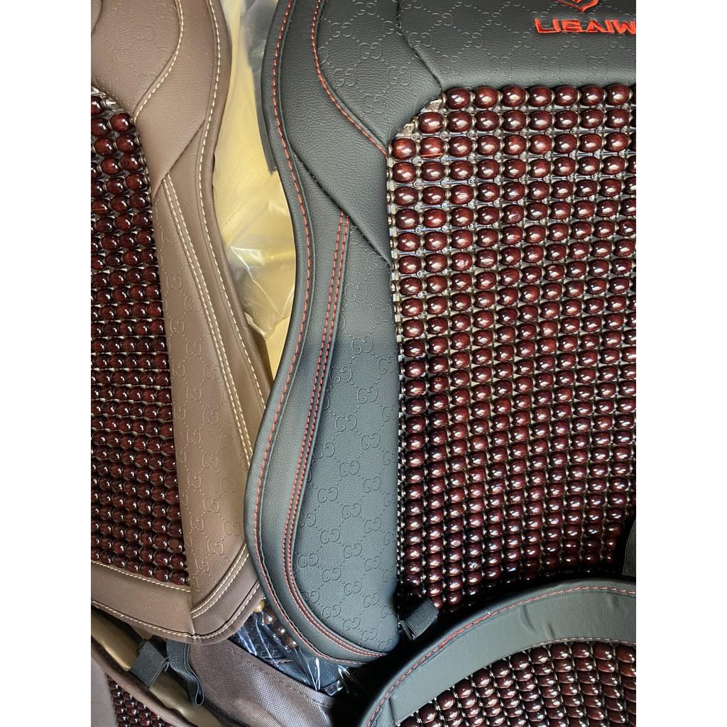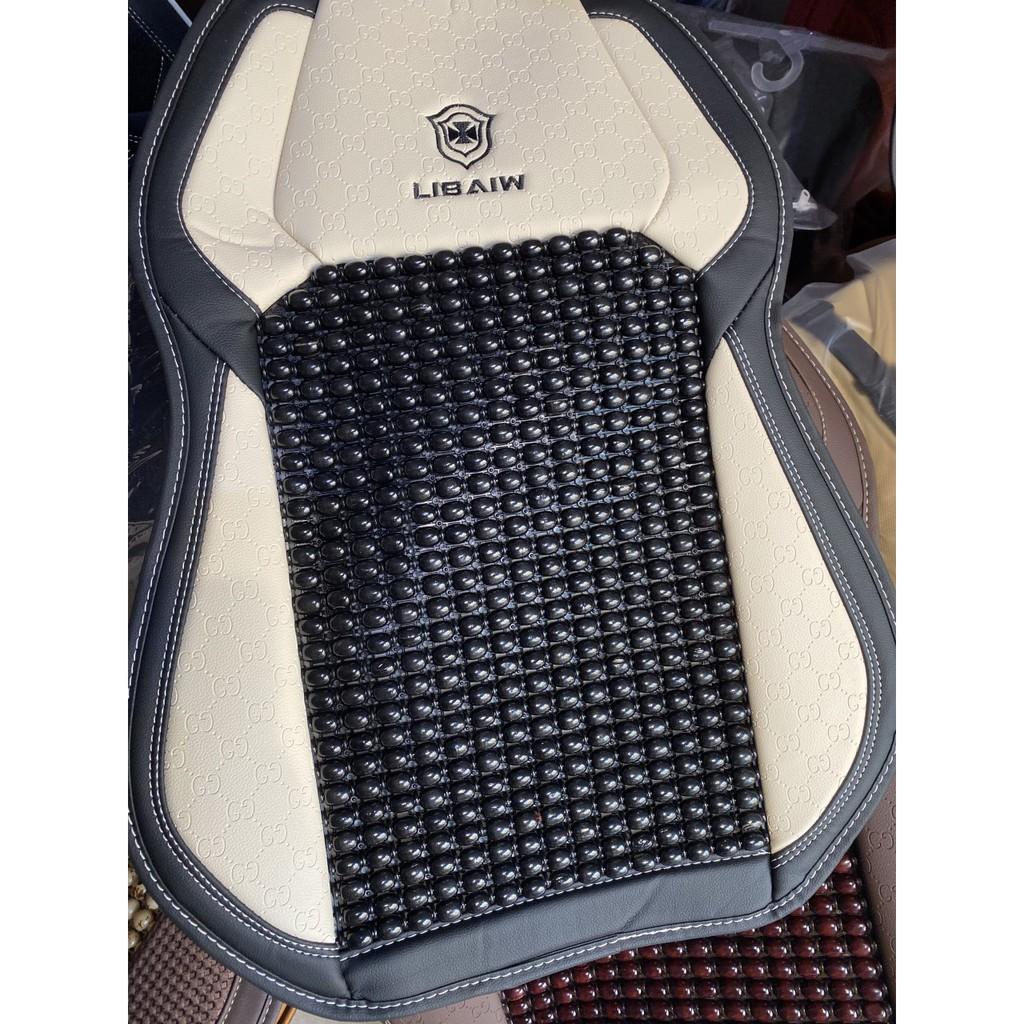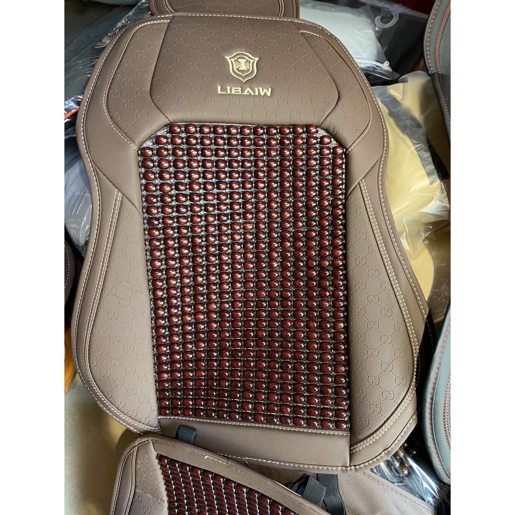 Bộ áo ghế ô tô lót liền hạt gỗ da cao cấp phủ 1 ghế trước, có đan hạt gỗ chống nóng, massage lưng