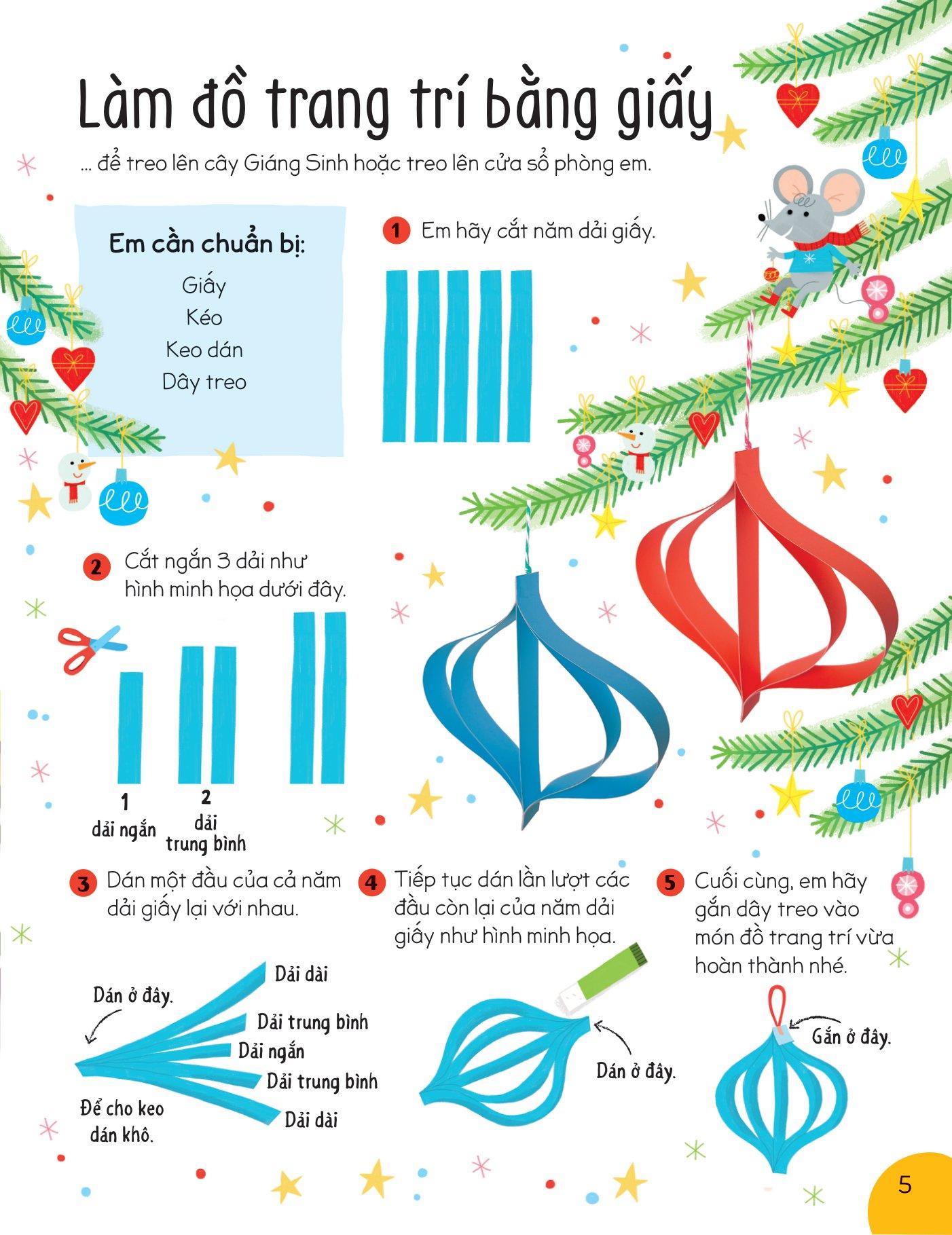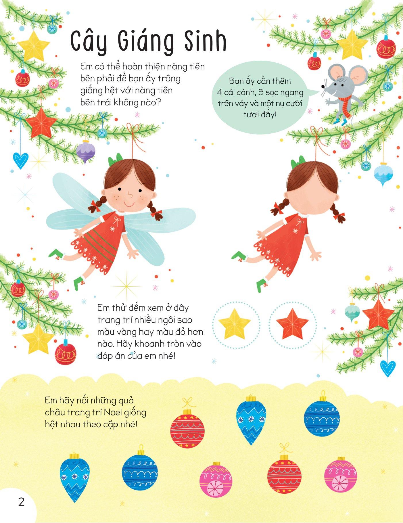 40++ Hoạt Động Sáng Tạo Cho Giáng Sinh Diệu Kỳ Với cuốn sách “40++ Hoạt động sáng tạo cho Giáng Sinh diệu kỳ”, trẻ sẽ được tham gia những trò chơi Giáng Sinh cực thú vị, phù hợp với không khí lễ hội đặc biệt này, ví dụ như: Làm một chiếc Cây Giáng Sinh tí hon Làm người tuyết từ chiếc tất Làm thiệp Giáng Sinh Cách vẽ người tuyết Làm mặt nạ ông già Noel Làm giấy gói quà Cắt những bông tuyết giấy Cuốn sách bao gồm hơn 40 hoạt động sáng tạo độc đáo, có hướng dẫn chi tiết, trực quan, giúp các em vừa phát triển trí tưởng tượng và óc sáng tạo, vừa phát triển năng lực thị giác cũng như khả năng tập trung, kỹ năng vận động và sự phối hợp tay-mắt… giúp các bạn nhỏ rèn luyện IQ, EQ rất hiệu quả. Ngoài ra còn rất nhiều các hoạt động khác như: Giải ô chữ, nối số, vẽ tranh, giải mã mê cung… đang chờ bạn nhỏ khám phá trong cuốn sách này đấy! Hãy cùng thỏa sức sáng tạo để làm nên một mùa Giáng Sinh thật diệu kỳ nhé!