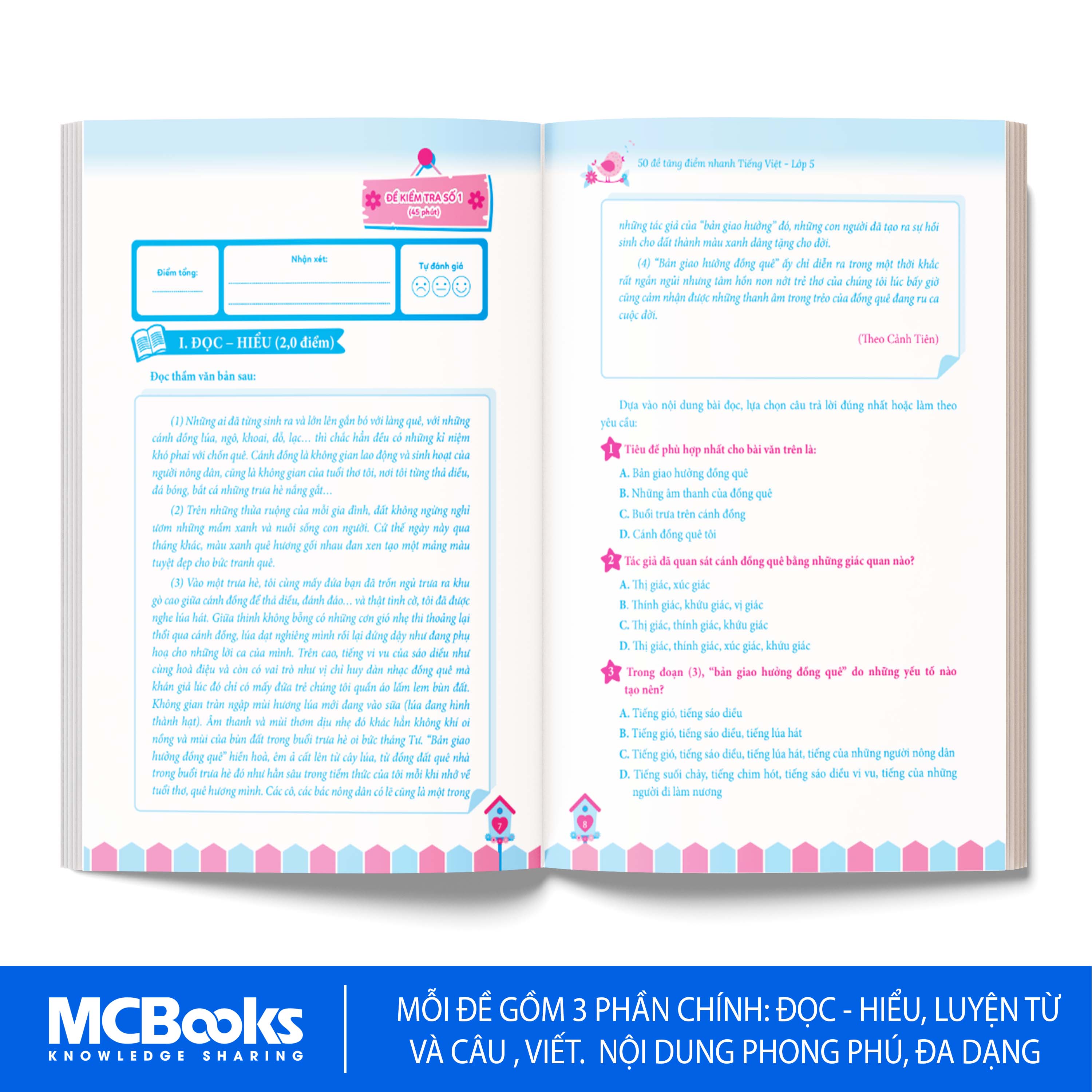 Là năm học cuối cùng của bậc tiểu học, do đó những nội dung kiến thức của lớp 5 sẽ là nền tảng vô cùng quan trọng để các bạn học sinh chuẩn bị cho chương trình THCS. Để học chắc các môn học trong chương trình lớp 5, đặc biệt là môn Tiếng Việt, thì các bạn học sinh cần phải tập trung ôn luyện đề kiểm tra. Cuốn sách 50 Đề Tăng Điểm Nhanh Tiếng Việt Lớp 5 – Học Nhẹ Nhàng – Dễ Dàng Điểm Cao được ra đời nhằm giúp các bạn học sinh củng cố vững chắc nền tảng kiến thức, tăng nhanh điểm sau mỗi bài kiểm tra.