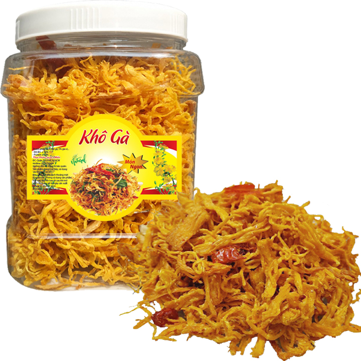 khô gà ngon, làm từ 100% gà tươi Việt Nam và ớt nguyên trái ạ. khô gà bên mình giòn, vì khô sấy khô giòn ạ, khách muốn ăn mềm và dai thì để khô