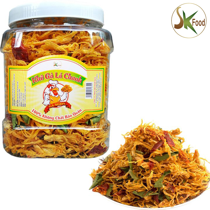 KHÔ GÀ XÉ LÁ CHANH THƯỢNG HẠNG Xuất xứ: Việt Nam. Hạn sử dụng: 12 tháng kể từ ngày sản xuất. Quy cách đóng gói: hủ nhựa pet cao cấp Khô gà xe lá chanh