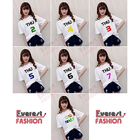 Áo Thun Theo Thứ Có các Size XS, S, M ,L, XL cho cả nam và nữ Hàng có sẵn, Ship hàng nhanh chóng. Xường may - in tại Gò Vấp HCM Áo như hình.