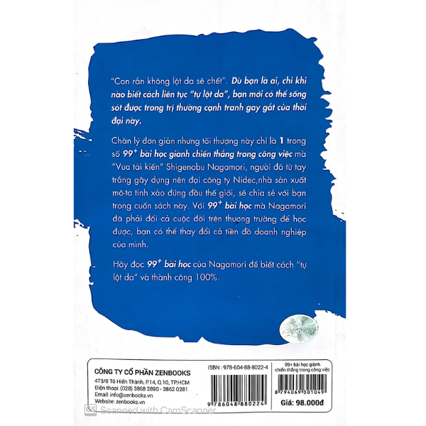 Mua tại Tiktok“Con rắn không lột da sẽ chết”. Dù bạn là ai, chỉ khi nào biết cách liên tục “tự lột da”, bạn mới có thể sống sót được trong thị trường cạnh tranh gay gắt của thời đại này. Chân lý đơn giản nhưng tối thượng này chỉ là 1 trong số 99+ bài học giành chiến thắng trong công việc mà “Vua tái kiến” Shigenobu Nagamori, người đã từ tay trắng gầy dựng nên đại công ty Nidec, nhà sản xuất mô-tơ tinh xảo đứng đầu thế giới, sẽ chia sẻ với bạn trong cuốn sách này. Với 99+ bài học mà Nagamori đã phải đổi cả cuộc đời trên thương trường để học được, bạn có thể thay đổi cả tiền đồ doanh nghiệp của mình. Hãy đọc 99+ bài học của Nagamori để biết cách “tự lột da” và thành công bạn nhé!