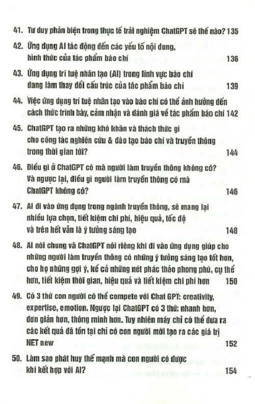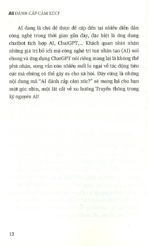 Mua tại TiktokA.I. Đánh Cắp Cảm Xúc? Trong một khảo sát, các chuyên gia công nghệ, nhà báo, truyền thông, marketing…đều bày tỏ hào hứng về triển vọng ứng dụng của công nghệ trí tuệ nhân tạo (AI) nói chung và ứng dụng Chat GPT nói riêng trong tương lai, song song đó, họ đều nhấn mạnh cần có biện pháp kiểm soát để các công cụ AI phục vụ công việc, cuộc sống của chúng ta thay vì phụ thuộc vào chúng. Chia sẻ về việc ứng dụng AI, cụ thể là công cụ ChatGPT, trong hoạt động vận hành doanh nghiệp, nhiều chuyên gia cho biết, việc sử dụng công nghệ AI nói chung và chat GPT nói riêng để tạo các nội dung truyền thông, marketing cá nhân hóa, xây dựng chatbot tư vấn bán hàng và hỗ trợ khách hàng…Cùng với đó là đưa ra gợi ý kế hoạch chăm sóc khách hàng giúp gia tăng năng suất, chất lượng; nhập liệu tự động bằng giọng nói, xây dựng trợ lý ảo AI thực hiện các nhiệm vụ như phân tích và trả lời số liệu báo cáo về thị hiếu bạn đọc, người tiêu dùng hỗ trợ trong việc hoạch định chiến lược truyền thông, marketing, bán hàng, tài chính, cũng như phân tích tối ưu chi phí, tốiưu hóa quy trình… AI đang là chủ đề được đề cập đến tại nhiều diễn đàn công nghệ trong thời gian gần đây, đặc biệt là ứng dụng chatbot tích hợp AI, Chat GPT…Khách quan nhìn nhận những giá trị bổ ích mà công nghệ trí tuệ nhân tạo (AI) nói chung và ứng dụng Chat GPT nói riêng mang lại là không thể phủ nhận, song vẫn còn nhiều mối lo ngại về tác động tiêu cực mà chúng có thể gây ra cho xã hội. Đây cũng là những nội dung mà “Ai đánh cắp cảm xúc?” qua một khảo sát dưới dạng Q&A với 100 chuyên gia trong các lĩnh vực sẽ mang lại cho bạn một góc nhìn rất nghịch!