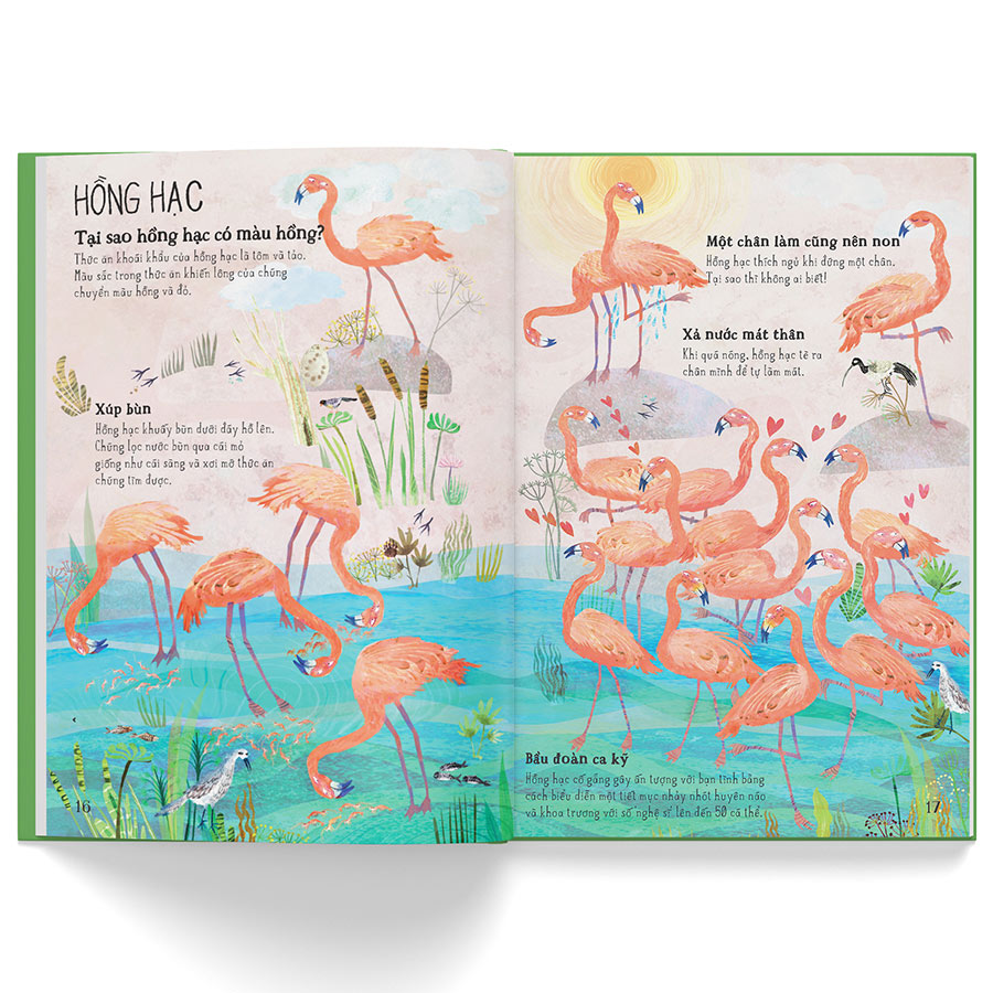 Mua tại TiktokA LÊ HẤP! THẾ GIỚI CHIM Tại sao hồng hạc có màu hồng? Vẹt có biết nói không? Vì sao trứng chim có đầu nhọn? Các bí mật thú vị về loài vật biết bay đang chờ được bật mí. Đừng quên chơi trò tìm hình nhé. Bạn có bỏ sót quả trứng nào không? A lê hấp! Thế giới chim sẽ mở ra trước mắt bạn vương quốc kỳ thù của các loài chim sặc sỡ, bóng bẩy nhưng cũng không kém phần ngờ nghệch. Hãy nhảy ngay vào cuốn sách để lật mở những sự thật lý thú về cách các loài chim sinh tồn và khoe mẽ trong thế giới tự nhiên.