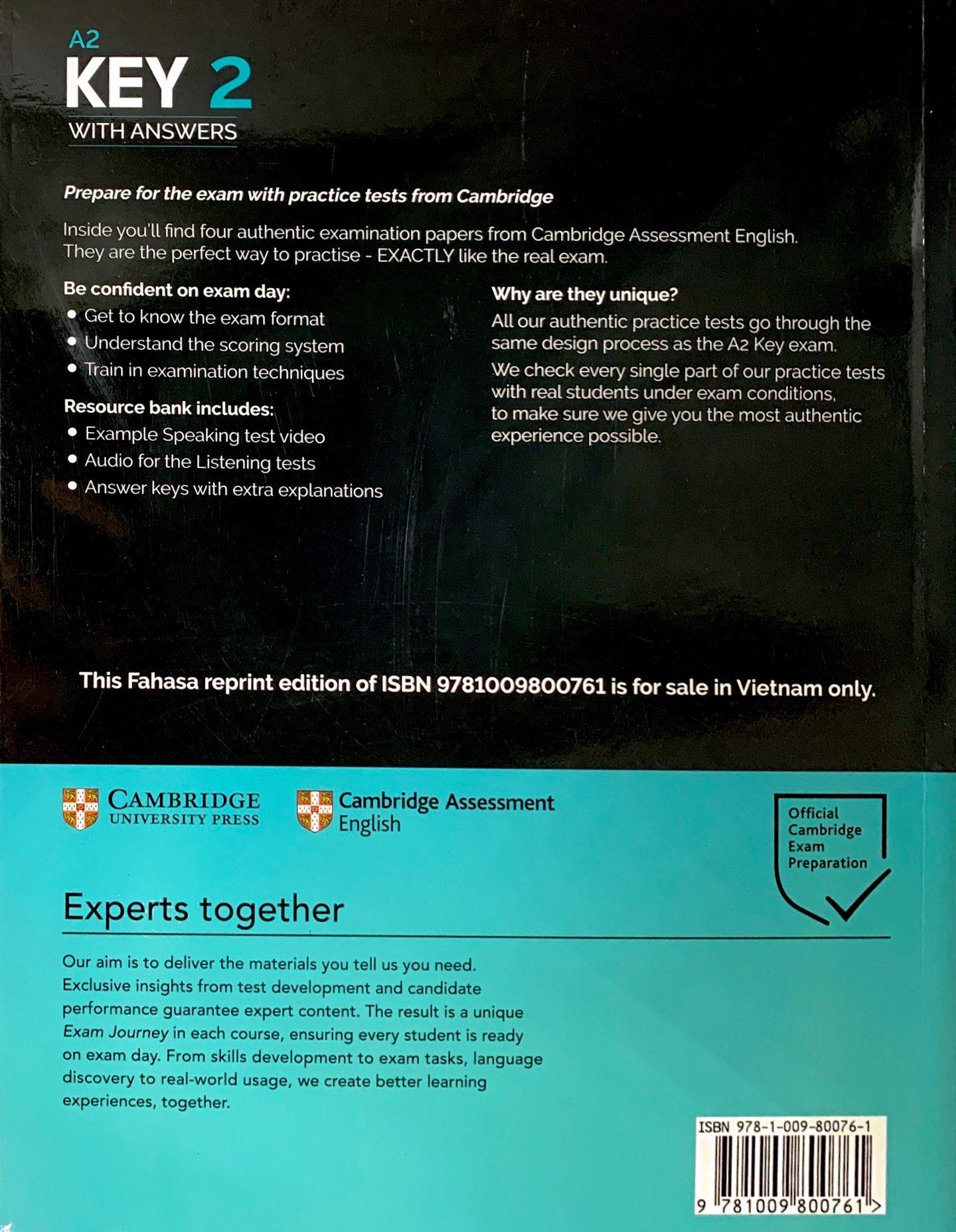 Authentic examination papers from Cambridge Assessment English provide perfect practice because they are EXACTLY like the real exam. Inside A2 Key for Schools for the revised 2020 exam you'll find four complete examination papers from Cambridge Assessment English. Be confident on exam day by working through each part of the exam and scoring system so you can familiarise yourself with the format and practise your exam technique.