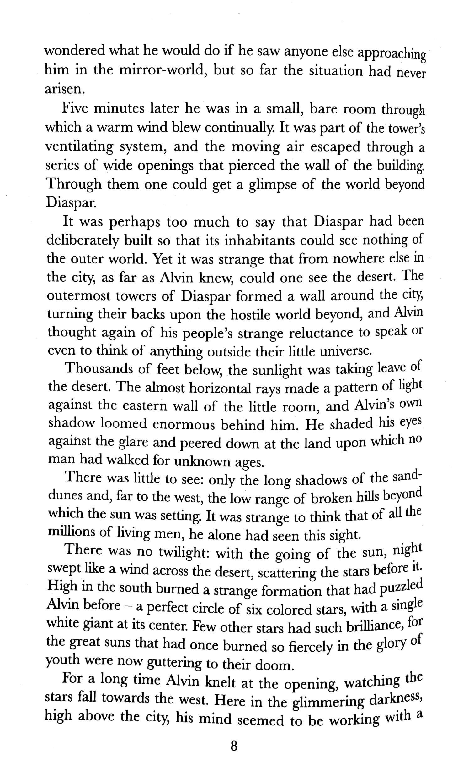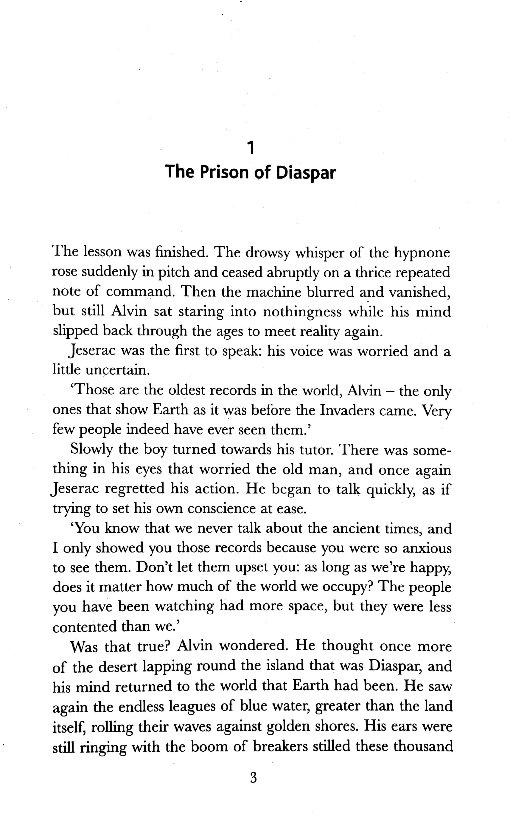 In the year ten billion A.D., Diaspar is the last city on Earth. Agelss and unchanging, the inhabitants see no reason to be curious about the outside world. But one child, Alvin - only seventeen and the last person to be born in Diaspar - finds that he is increasingly drawn to what lies outside the city walls. Even though he knows the Invaders, who devastated the world, may still be out