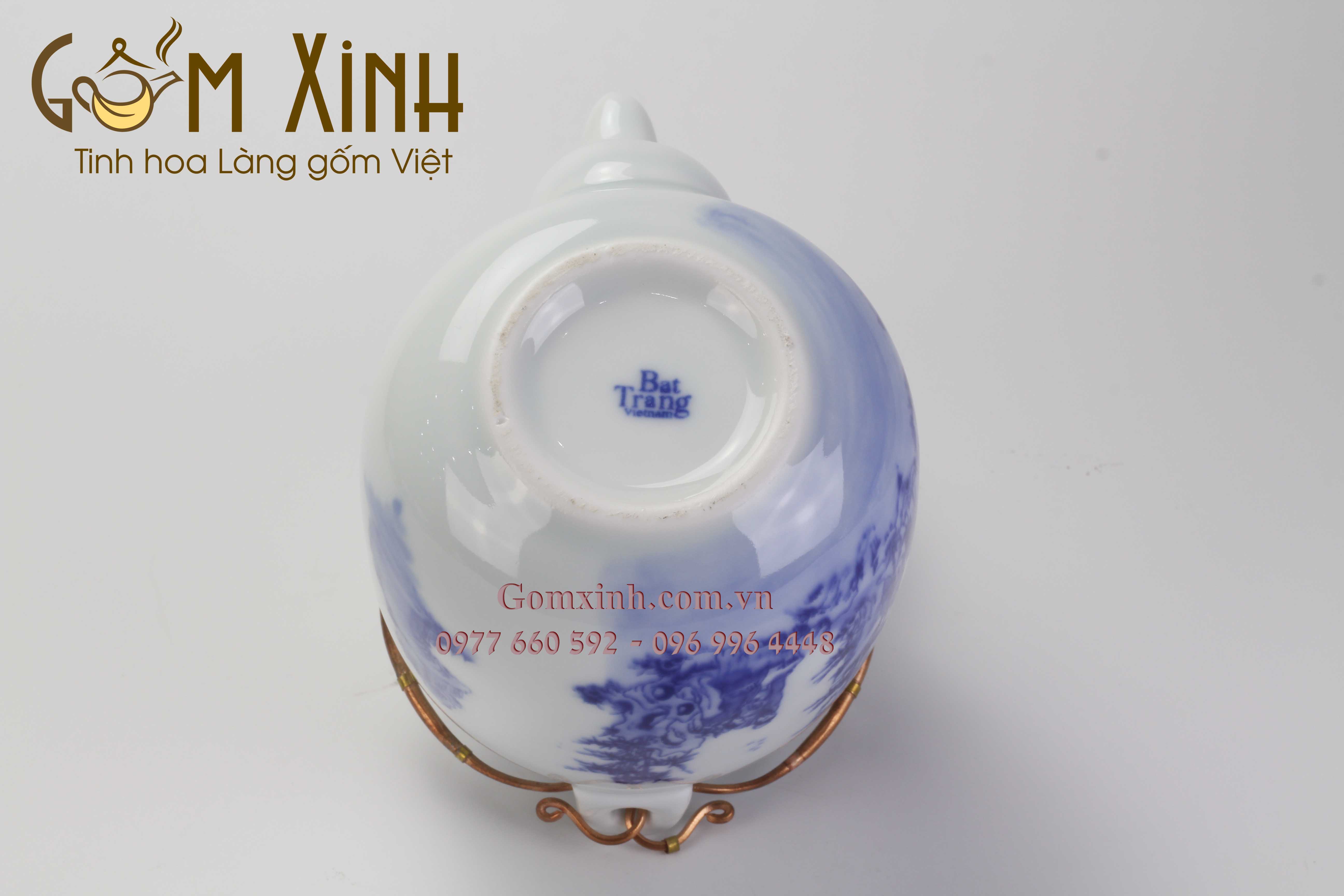 Thể tích : 350ml Chất liệu : Men xanh Bát Tràng Họa tiết : Nụ Tầm Xuân Kĩ Thuật