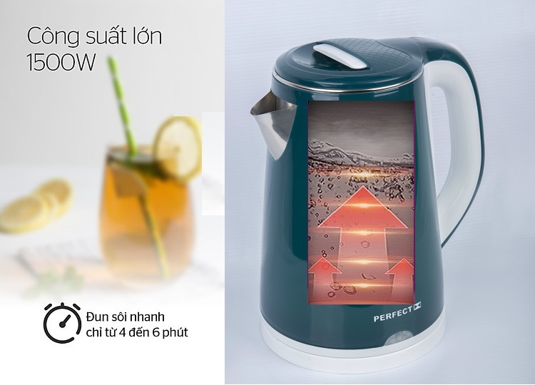 ✨Ấm đun siêu tốc 2 lớp Inox 304 Perfect 2L2 Màu Xanh - Hàng chính hãng