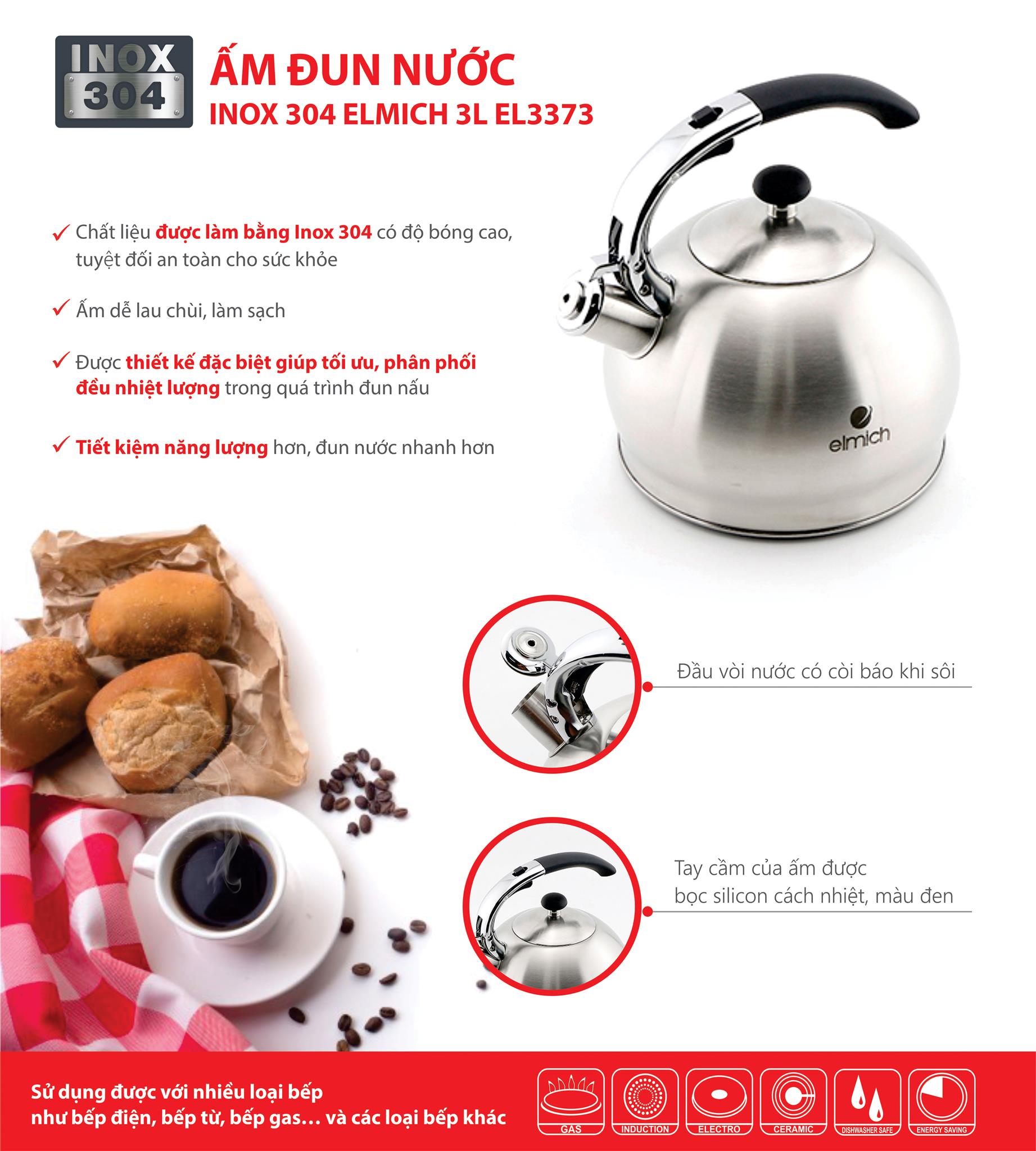 ẤM ĐUN NƯỚC BẰNG INOX 304 ELMICH 3L EL3373- BẢO HÀNH CHÍNH HÃNG 24 THÁNG - 2353373