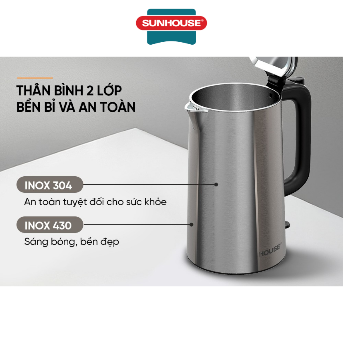 ẤM SIÊU TỐC INOX 2 LỚP SUNHOUSE SHD1382