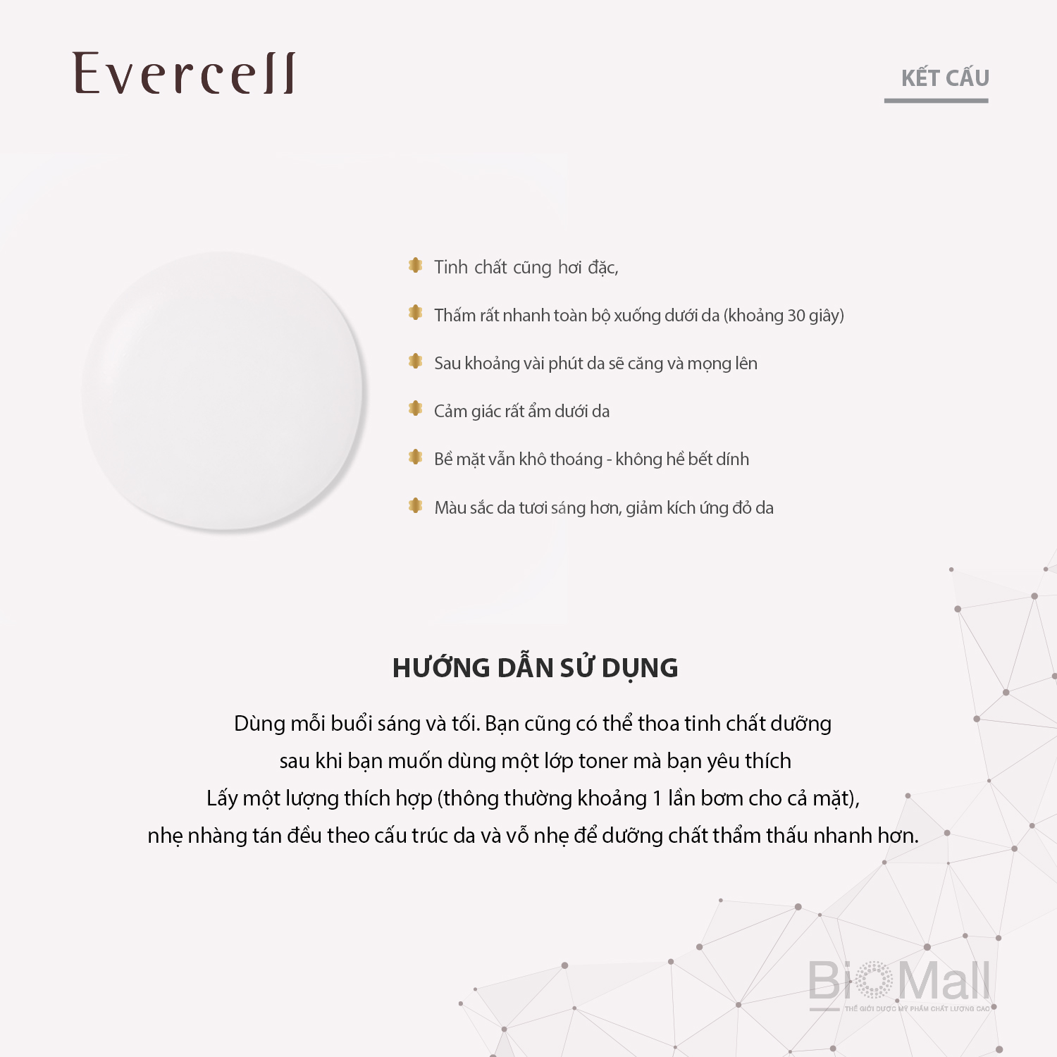 Serum dưỡng trắng cấp ẩm phục hồi da với tinh chất dễ thẩm thấu, mỏng nhẹ giúp cấp ẩm tức thì, làm dịu bề mặt da, giữ sự đàn hồi, săn chắc cho da. Dưỡng