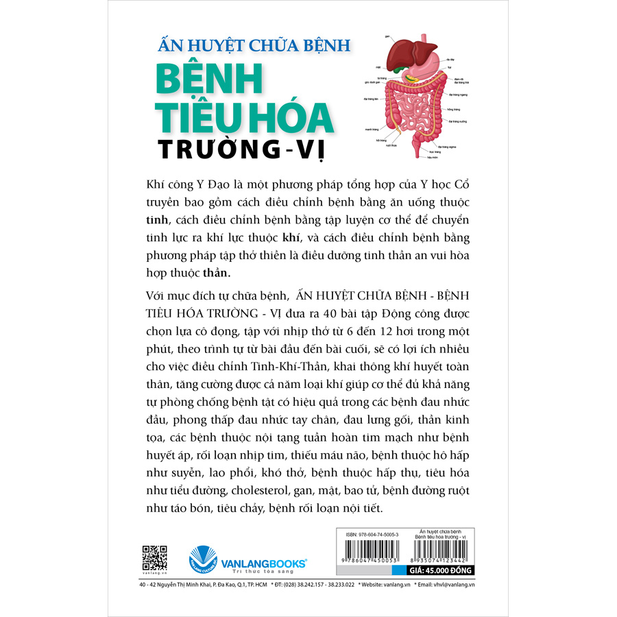 Với mục đích tự chữa bệnh, ẤN HUYỆT CHỮA BỆNH - BỆNH TIÊU HÓA TRƯỜNG - VỊ đưa ra 40 bài tập Động công được chọn lựa cô đọng, tập với nhịp thở từ 6 đến 12 hơi trong một phút, theo trình tự từ bài đầu đến bài cuối, sẽ có lợi ích nhiều cho việc điều chỉnh Tinh-Khí-Thần, khai thông khí huyết toàn thân, tăng cường được cả năm loại khí giúp cơ thể đủ khả năng tự phòng chống bệnh tật có hiệu quả trong các bệnh đau nhức đầu, phong thấp đau nhức tay chân, đau lưng gối, thần kinh tọa, các bệnh thuộc nội tạng tuần hoàn tim mạch như bệnh huyết áp, rối loạn nhịp tim, thiếu máu não, bệnh thuộc hô hấp như suyễn, lao phổi, khó thở, bệnh thuộc hấp thụ, tiêu hóa như tiểu đường, cholesterol, gan, mật, bao tử, bệnh đường ruột như táo bón, tiêu chảy, bệnh rối loạn nội tiết.