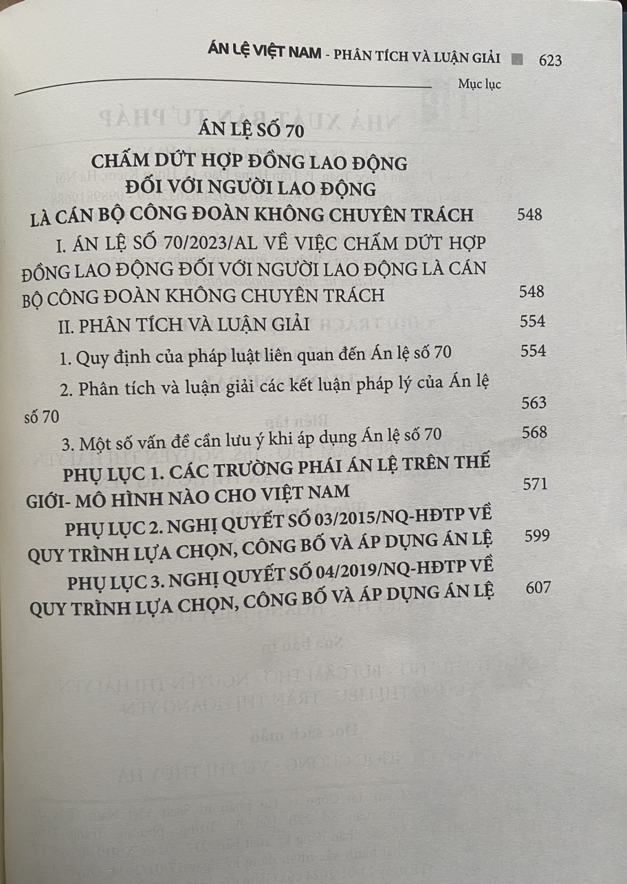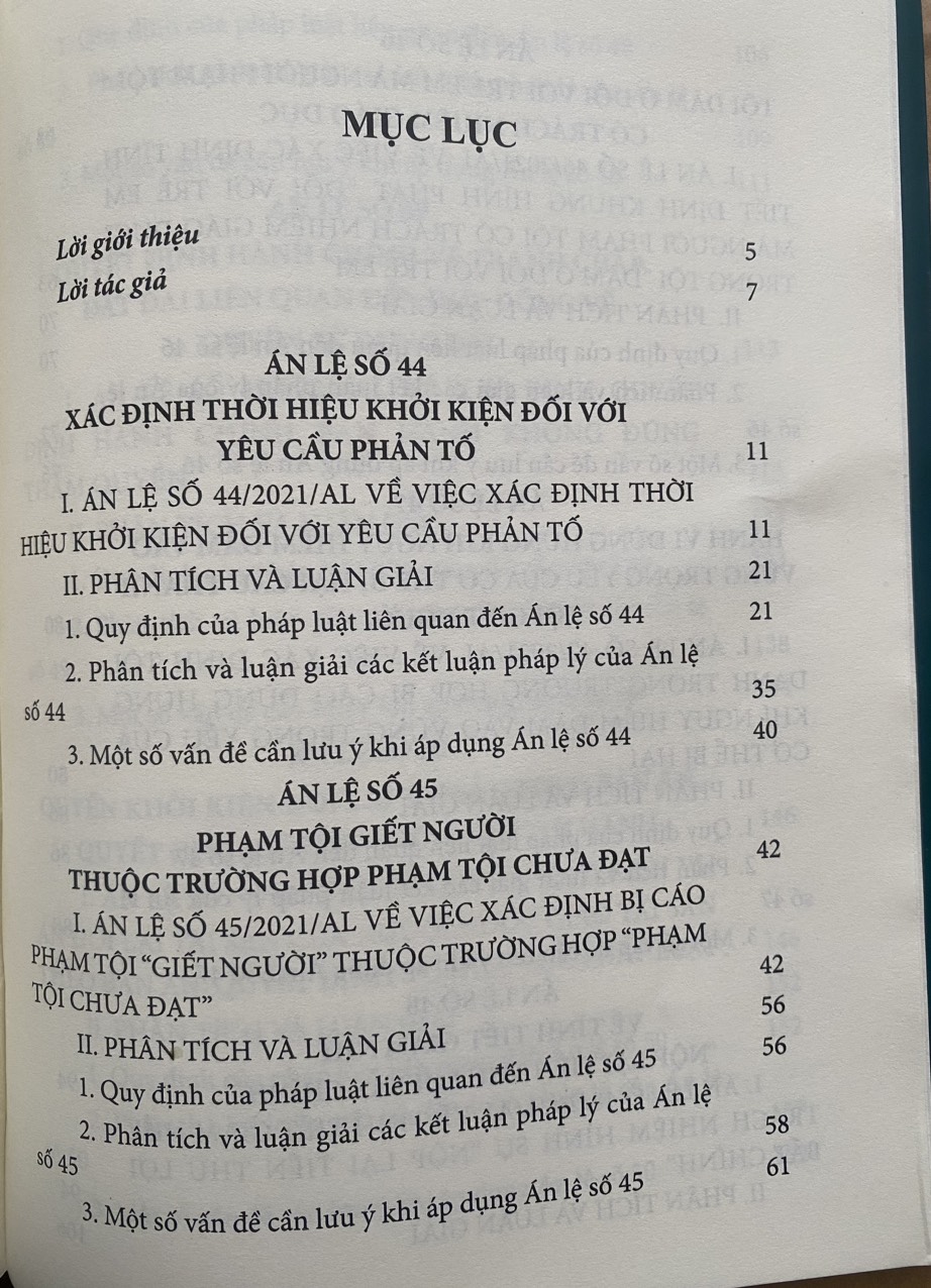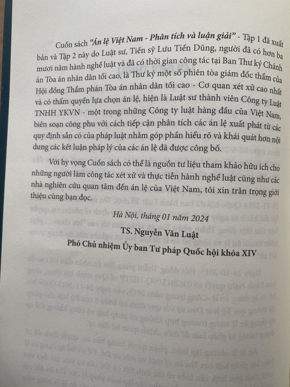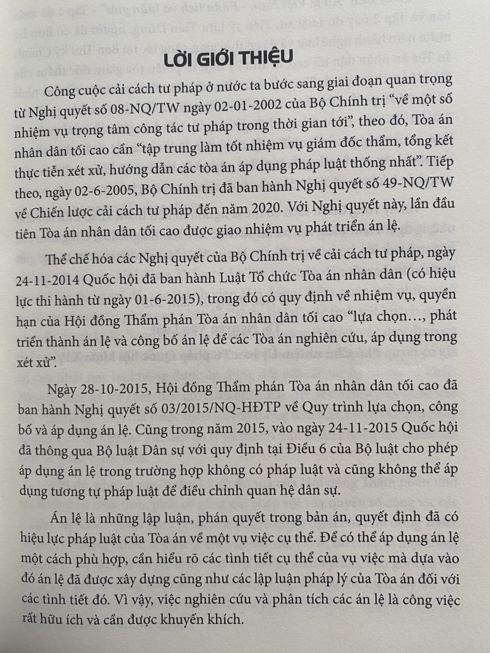 Với hy vọng Cuốn sách có thể là nguồn tư liệu tham khảo hữu ích cho những người làm công tác xét xử và thực tiễn hành nghề luật cũng như các nhà nghiên cứu quan tâm đến án lệ của Việt Nam, tôi xin trân trọng giới thiệu cùng bạn đọc.
