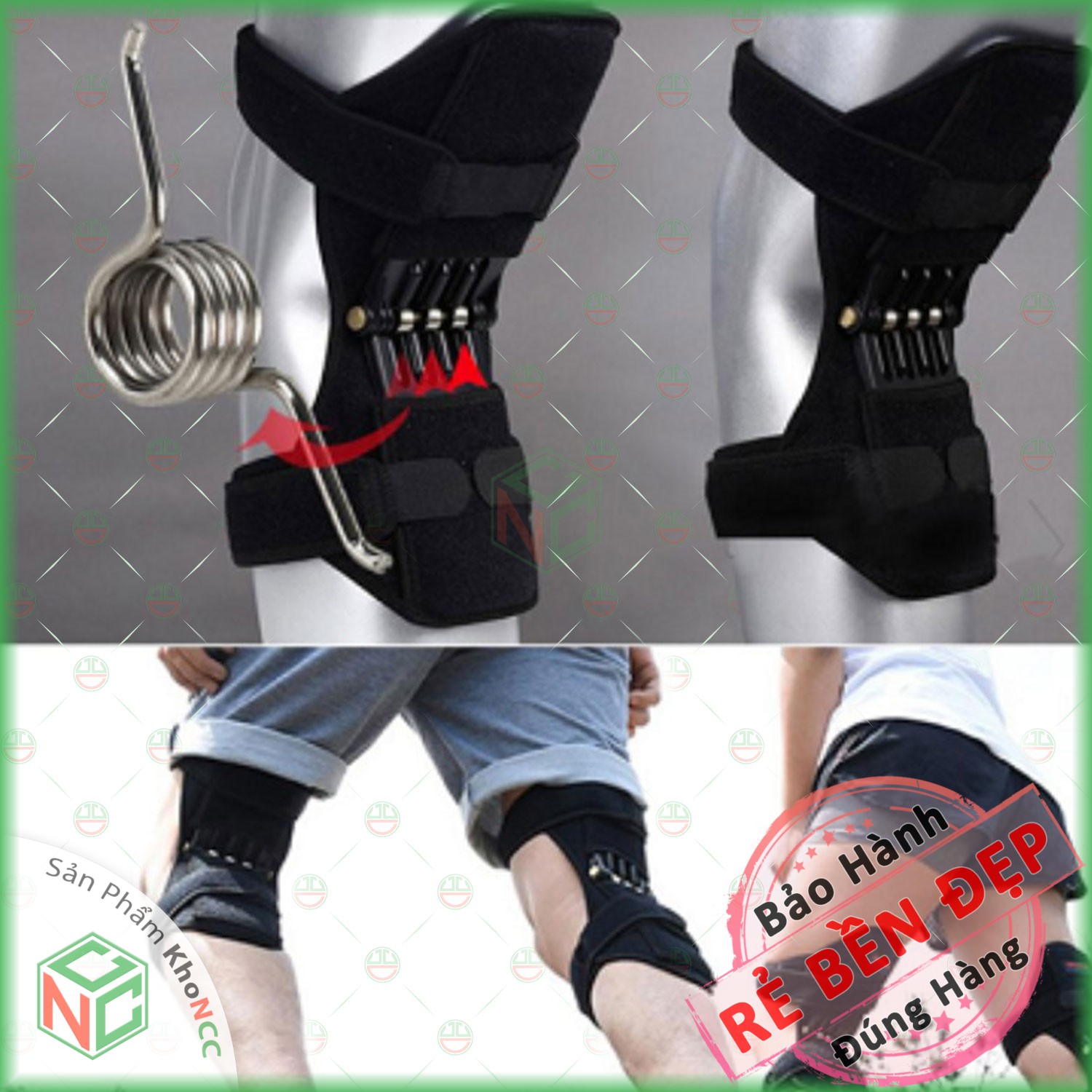 ✨[An Tâm] Khung Đai KhoNCC Hàng Chính Hãng - Băng Đeo Hỗ Trợ Lực Khớp Gối Có Lò Xo - Nâng Đỡ Đôi Chân Giảm Chấn KLM-KTLKG (Đen)