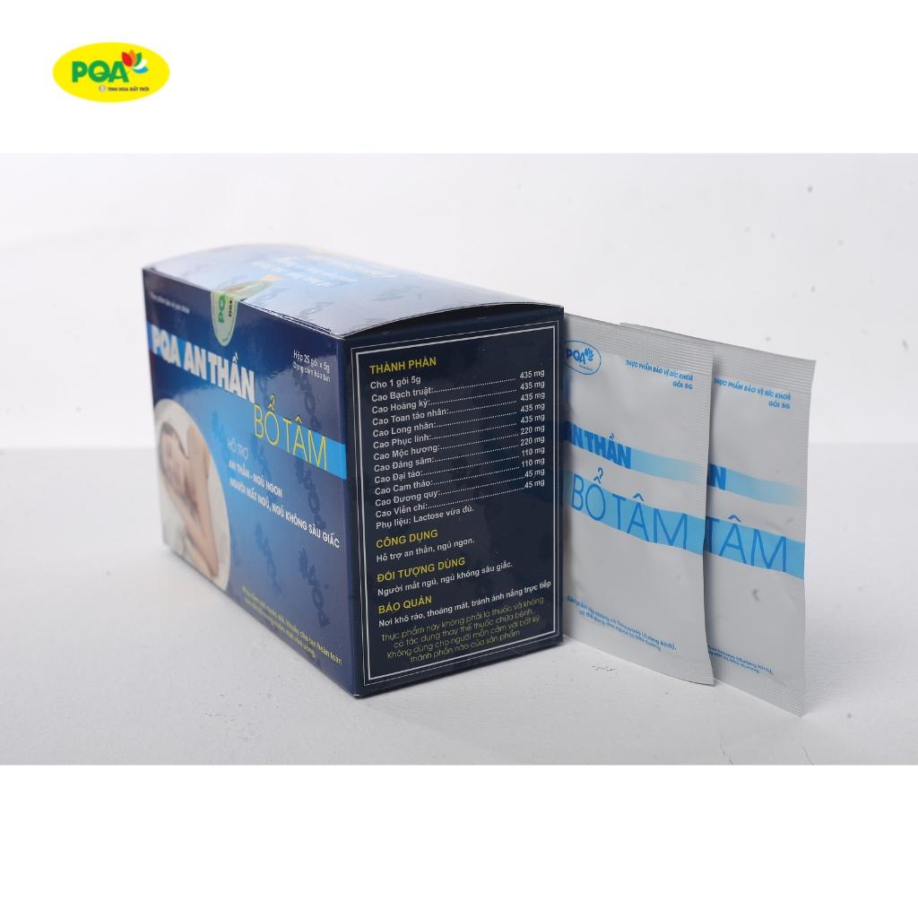An Thần Bổ Tâm PQA Thành Phần Từ Thiên Nhiên Hỗ Trợ Người Mất Ngủ, Ngủ Không Sâu Giấc Hộp 25 Gói THÔNG TIN SẢN PHẨM: - Xuất xứ: Việt Nam - Dung tích: Hộp