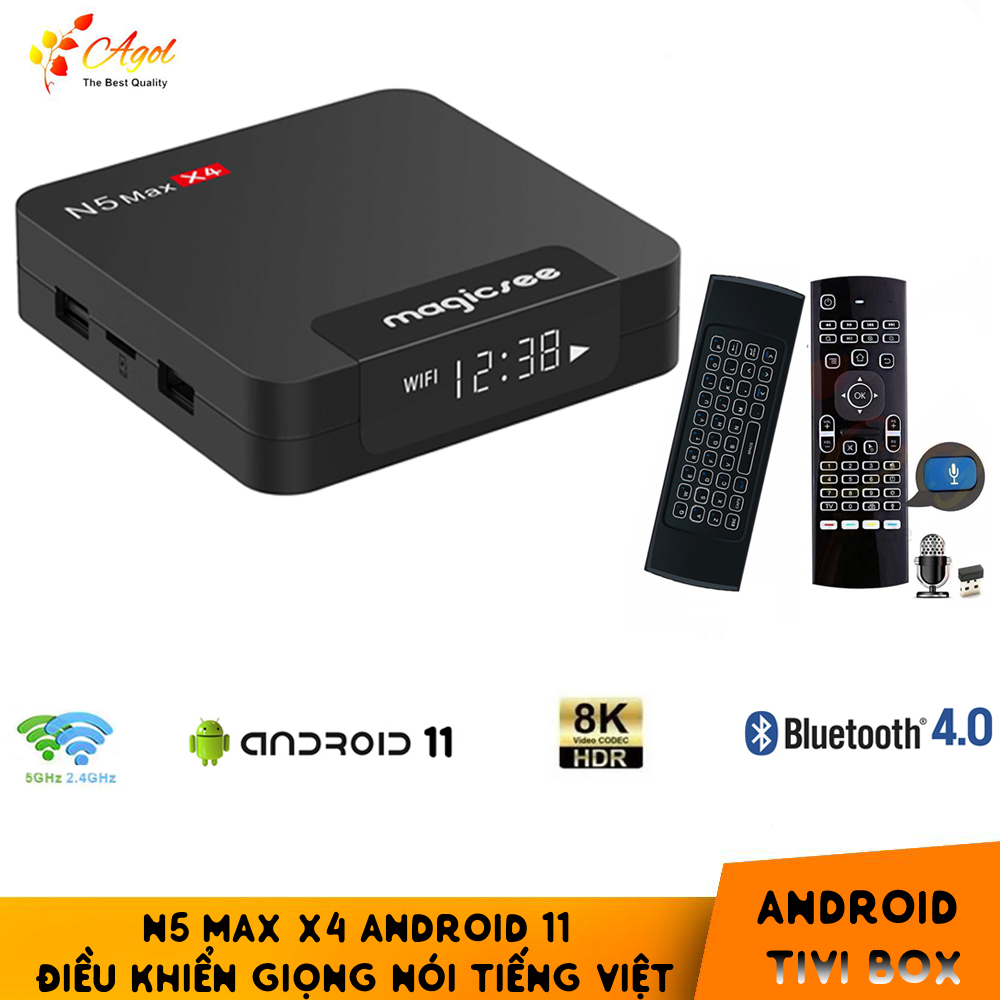 Mua tại TiktokAGOL SHOP XIN GIỚI THIỆU SẢN PHẨM Android tivi box MAGICSEE N5 MAX X4 Ram 4G Android 11 điều khiển giọng nói kiêm bàn phím chuột bay có đèn nền dual wifi 2 băng tần bluetooth S905X4 cài sẵn phim, truyền hình cáp miễn phí vĩnh viễn cáp miễn phí vĩnh viễn