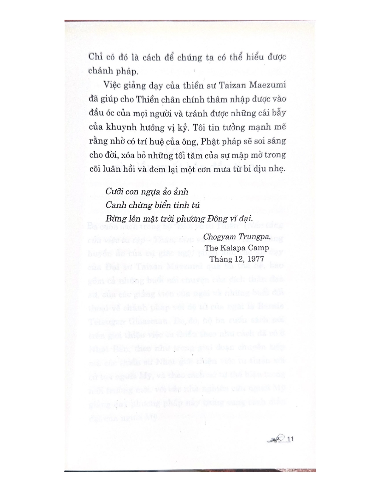 Trải qua ba thập kỷ, bộ sách Bàn về tu Thiền (On Zen Practice) của Taizan Maezumi và Bernie Glassman vẫn còn là cuốn sách nhập môn chủ yếu về Thiền tông, cung cấp một kiến thức khá đầy đủ về mọi khía cạnh của việc tu tập. Ánh trăng huyền ảo của sự giác ngộ là cuốn thứ hai trong bộ sách kinh điển này, sẽ đưa người đọc lên một tầm cao mới.
