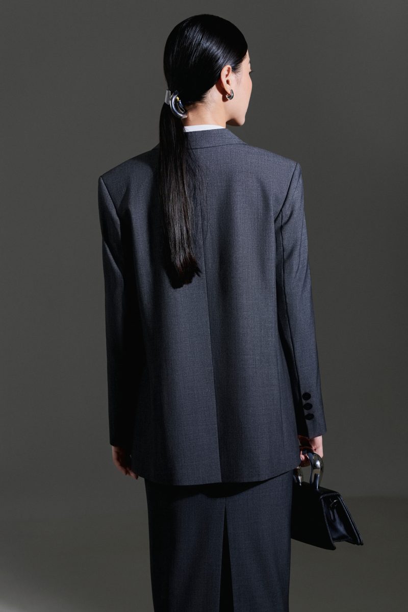 ✨Áo blazer vai rộng cổ 2 ve ZELDA màu xám chì thiết kế cao cấp WHITE CHIC