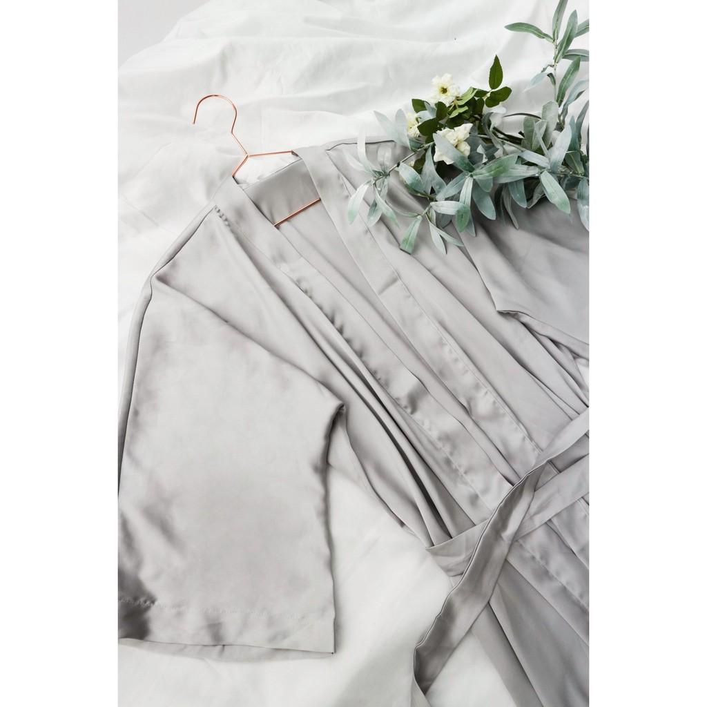 Kiểu dáng áo khoác form suông rộng Thân trước dài cách điệu để cột trước Cổ 1 ve Lót thân trước Tay dài, bảng tay 8cm CHẤT LIỆU Lụa Pháp (Polyester Satin) Nghệ nhân: Yến,