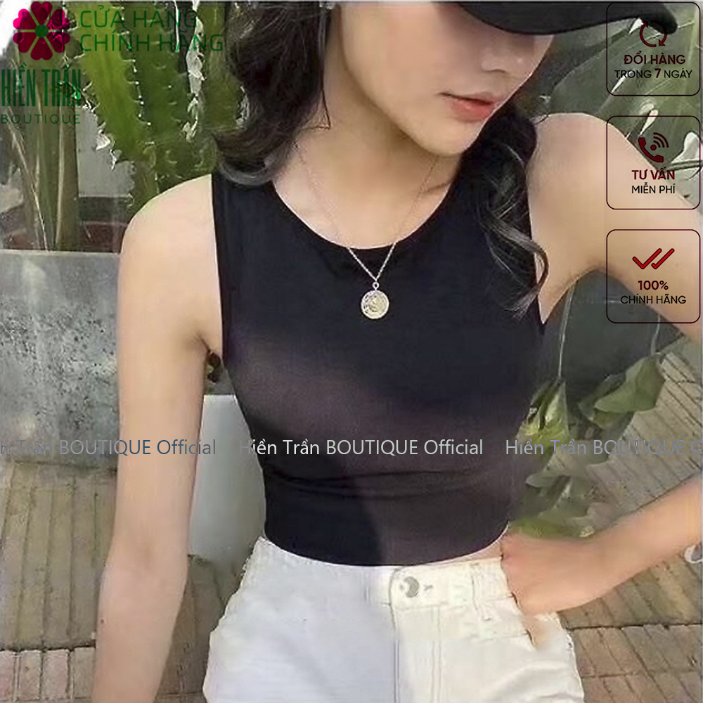 ✨Áo croptop nữ Hiền Trần BOUTIQUE sát nách ba lỗ thun không tay kiểu ôm body tank top vải cotton co giãn tốt 3 màu đen trắng nâu