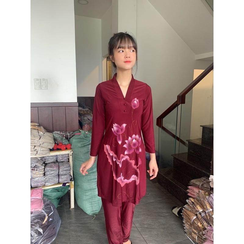 - Áo Dài chất vải nhung cao cấp, vải mịn, có độ co giãn nhẹ,,kèm quần dài lụa phía sau lưng thun mặc thoải mái -Thiết kế áo dài cách tân, phôm suông,chiết eo nhẹ,