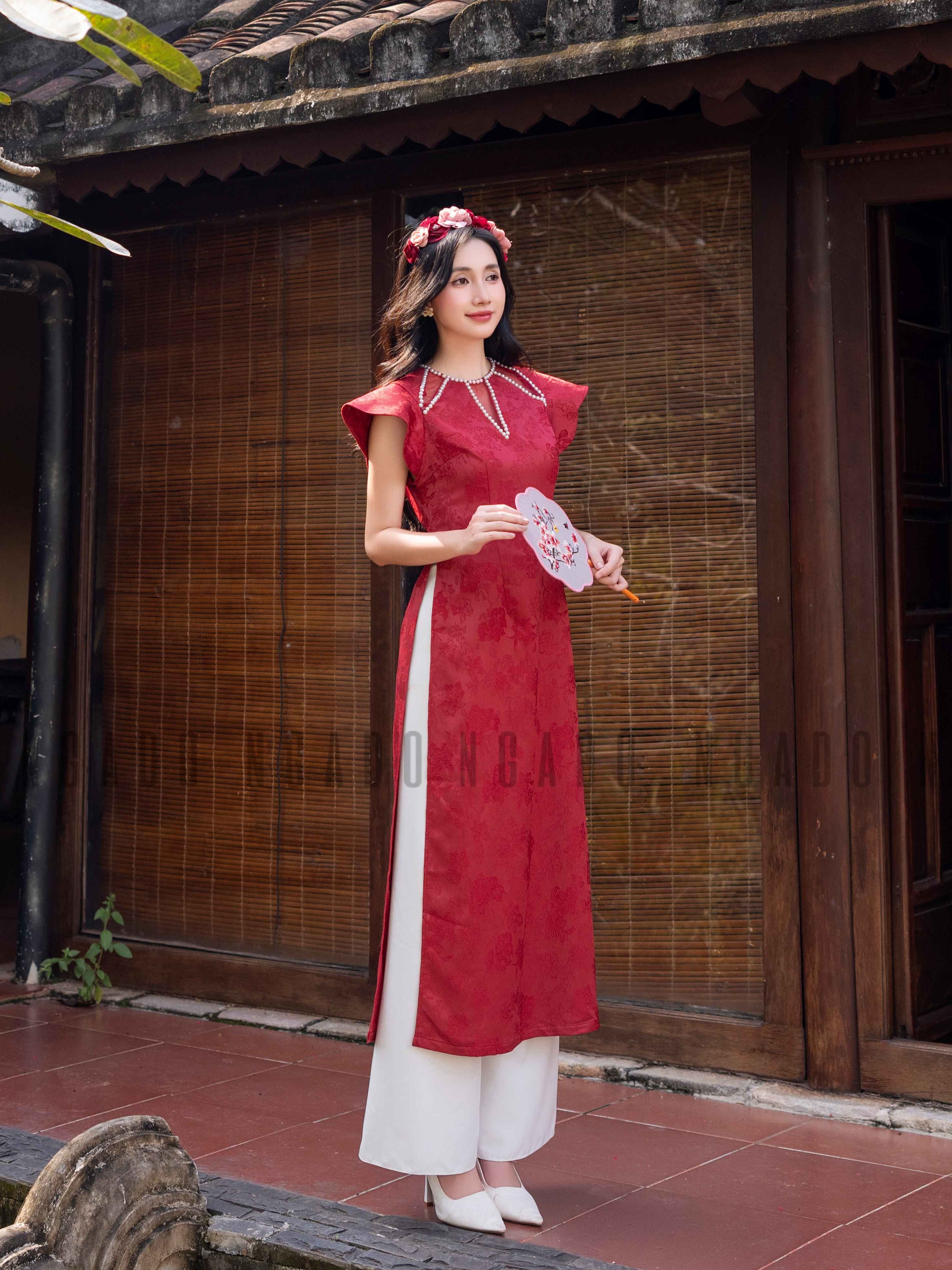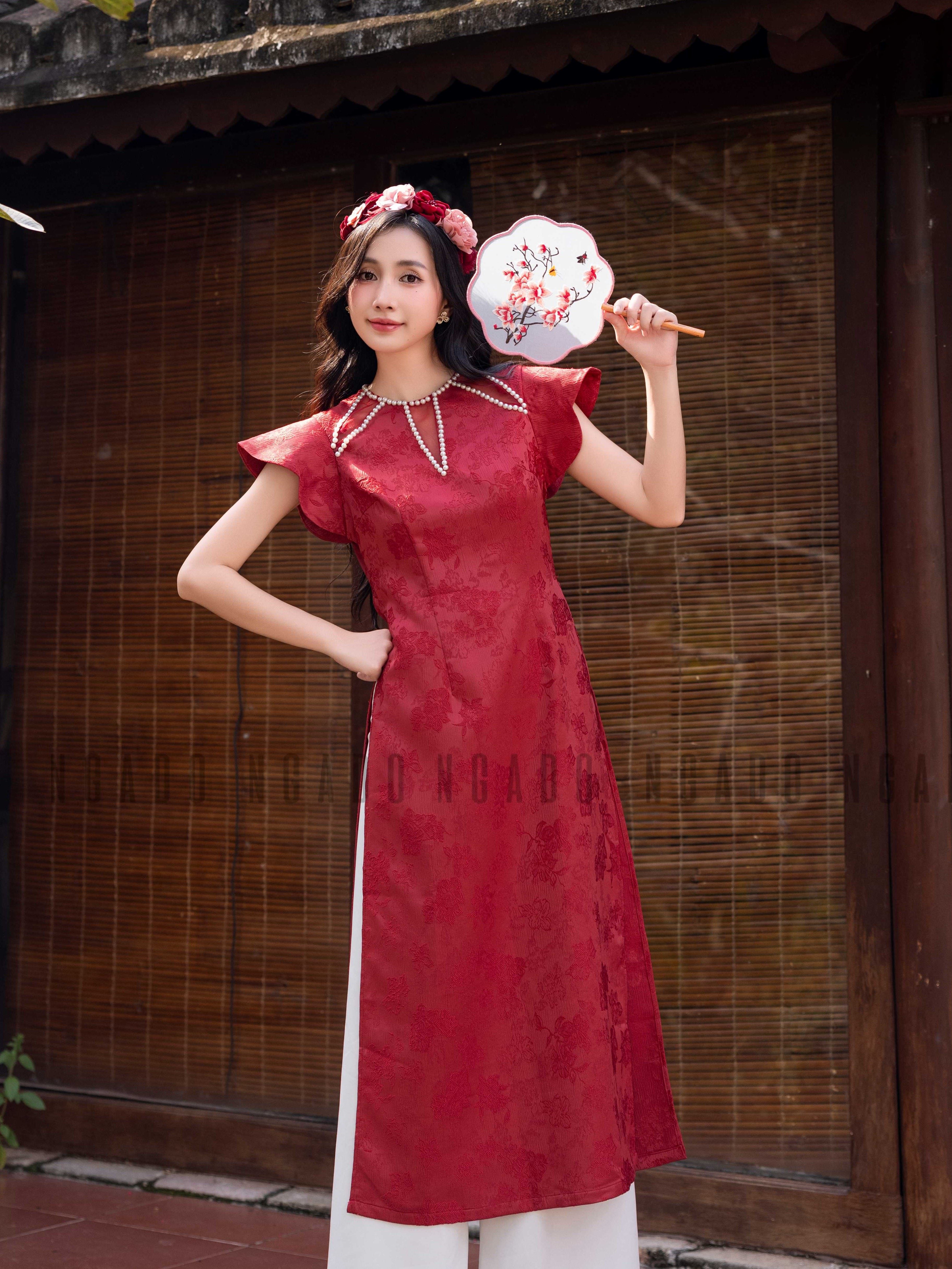 ✨Áo dài Cát Châu NGADO , áo dài đỏ , áo dài Tết