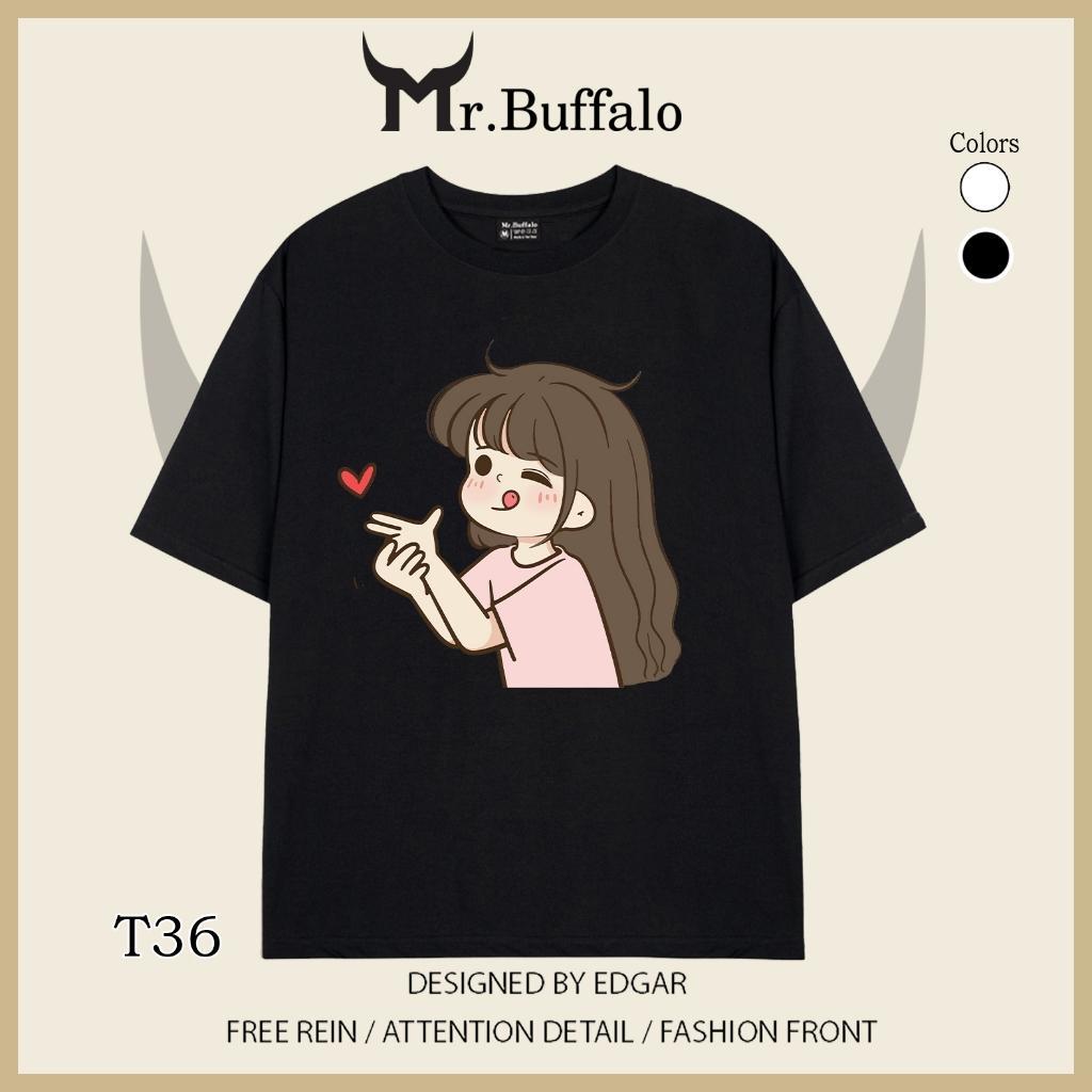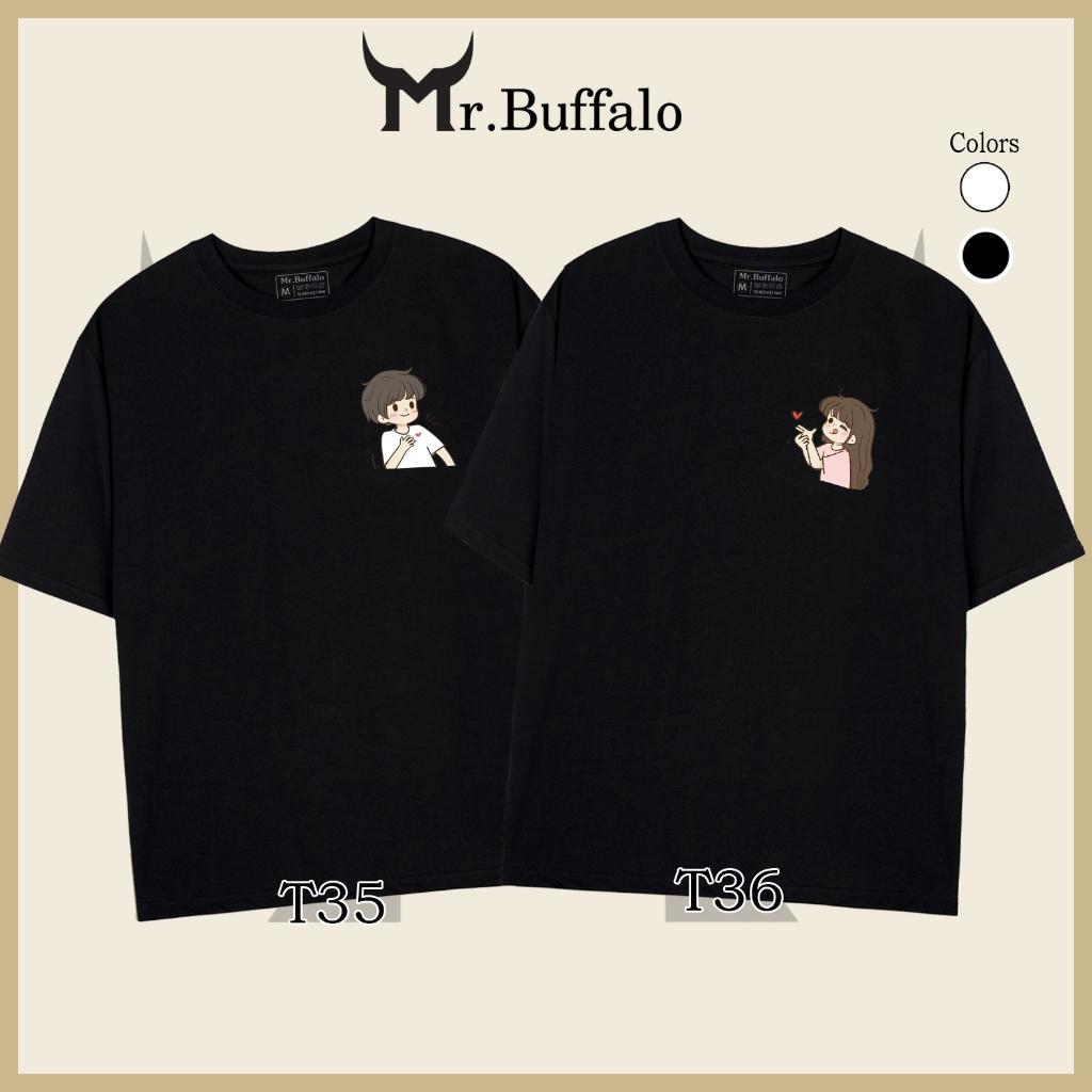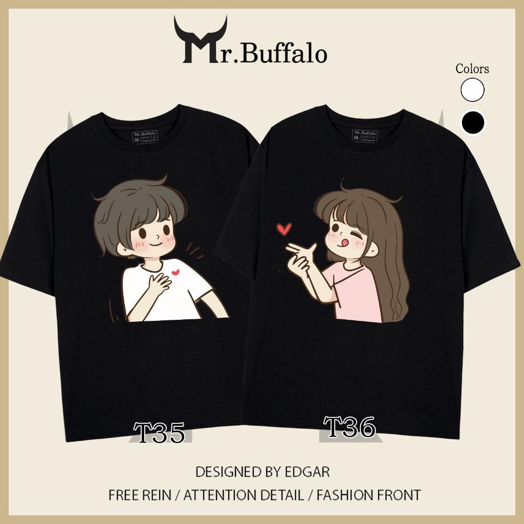 ✨Áo đôi , áo thun cặp nam nữ tay lỡ Unisex cute form rộng vải cotton 100% T35T36 - Mr.Buffalo