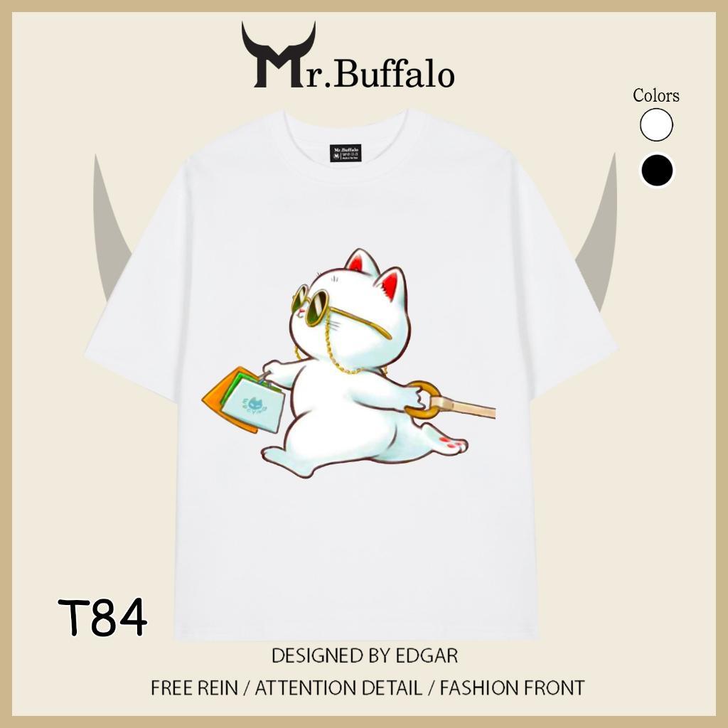 ✨Áo đôi tay lỡ unisex Mèo dễ thương mèo trắng kéo mèo vàng cho cặp đôi Mr.Buffalo