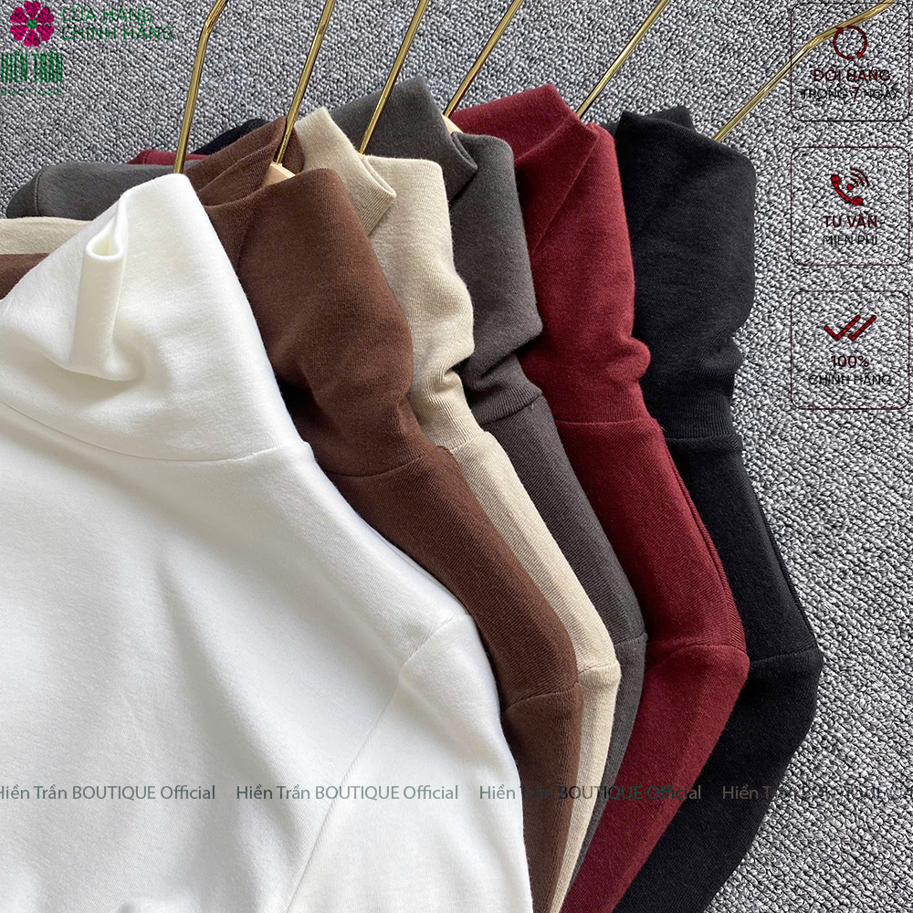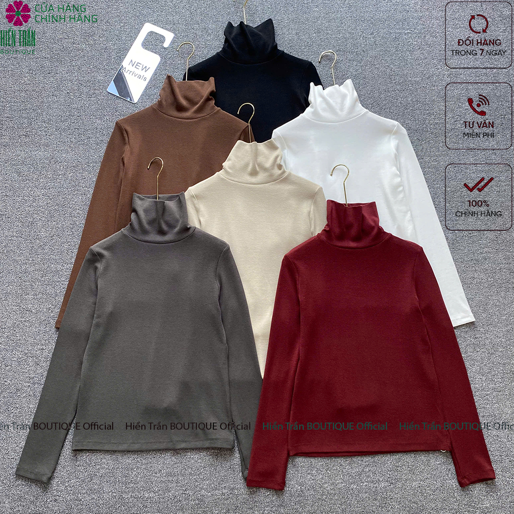 ✨Áo giữ nhiệt nữ Hiền Trần BOUTIQUE cổ lọ dài tay chất vải cotton mềm mại kiểu dáng suông phong cách thanh lịch A14 Women