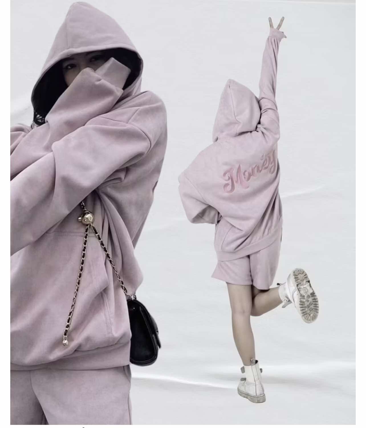 ✨Áo Hoodie da lộn chữ thêu dáng oversize cao cấp