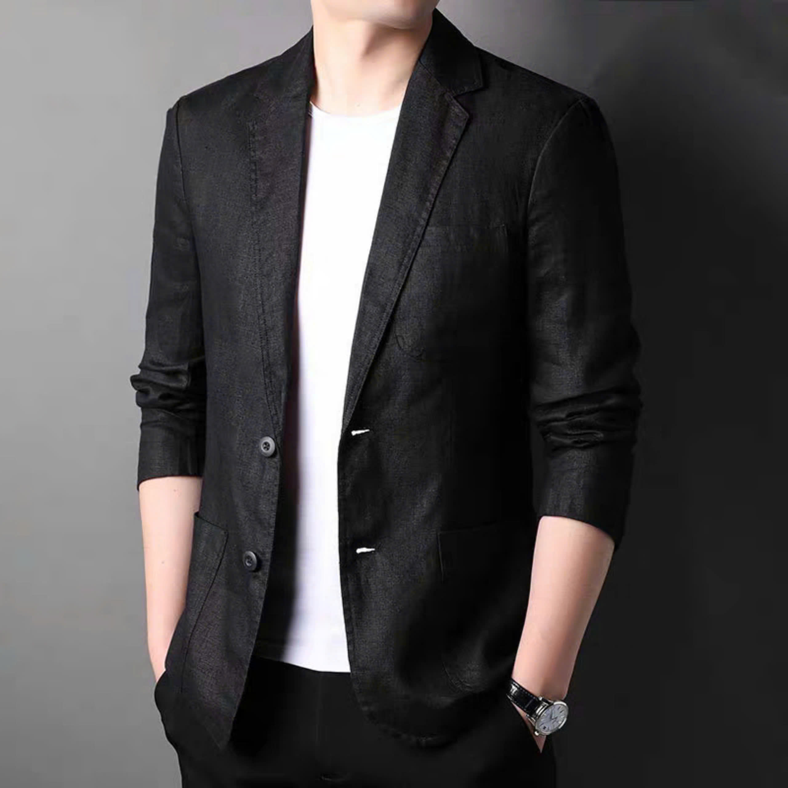 1. Tên sản phẩm: Áo Blazer Nam Dáng áo: form suông Chất vải: Vải linen bột cao cấp Họa Tiết: Trơn Hướng dẫn chọn size: SIZE S: 45Kg - 55 Kg SIZE M: 56Kg -