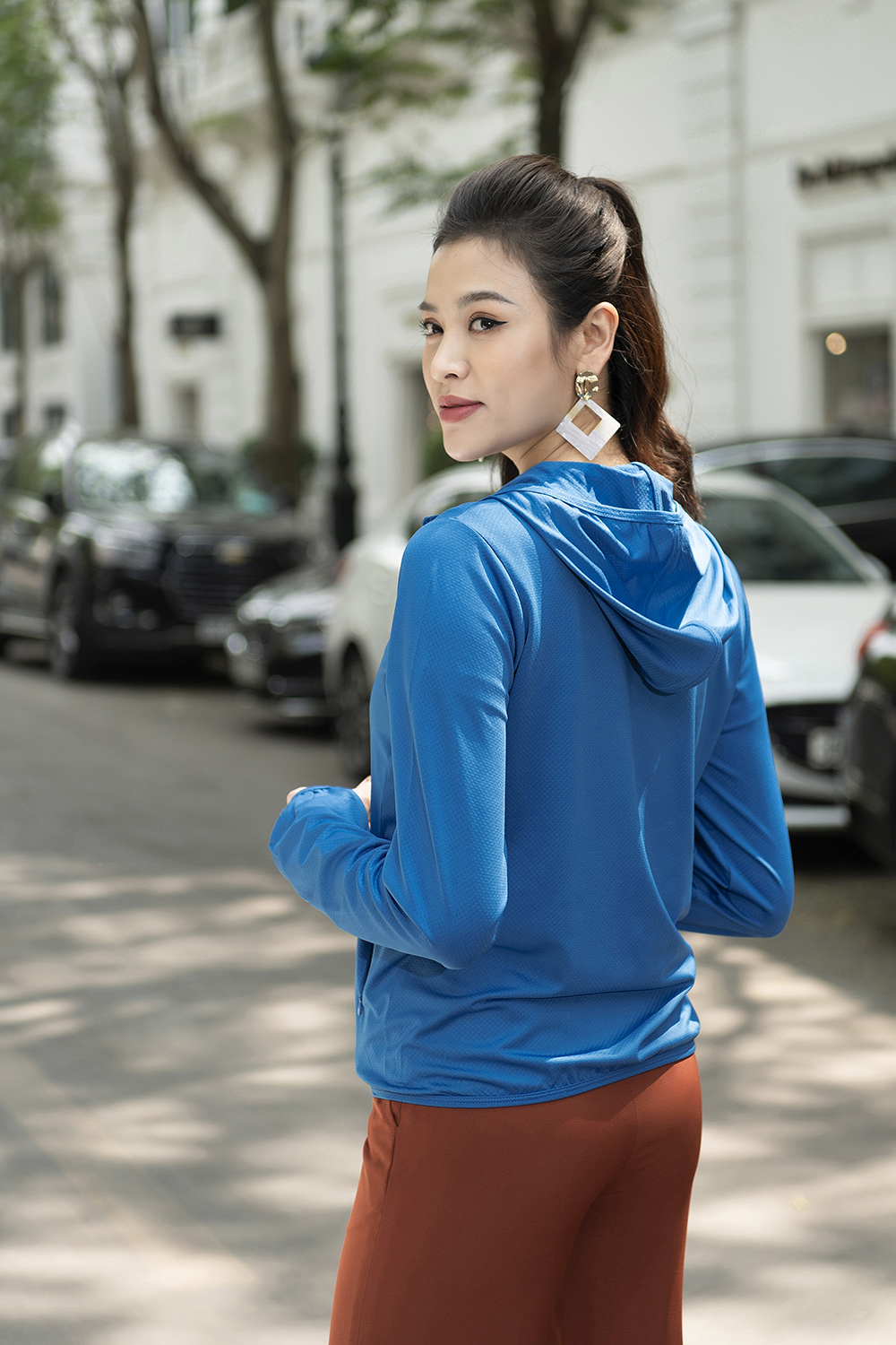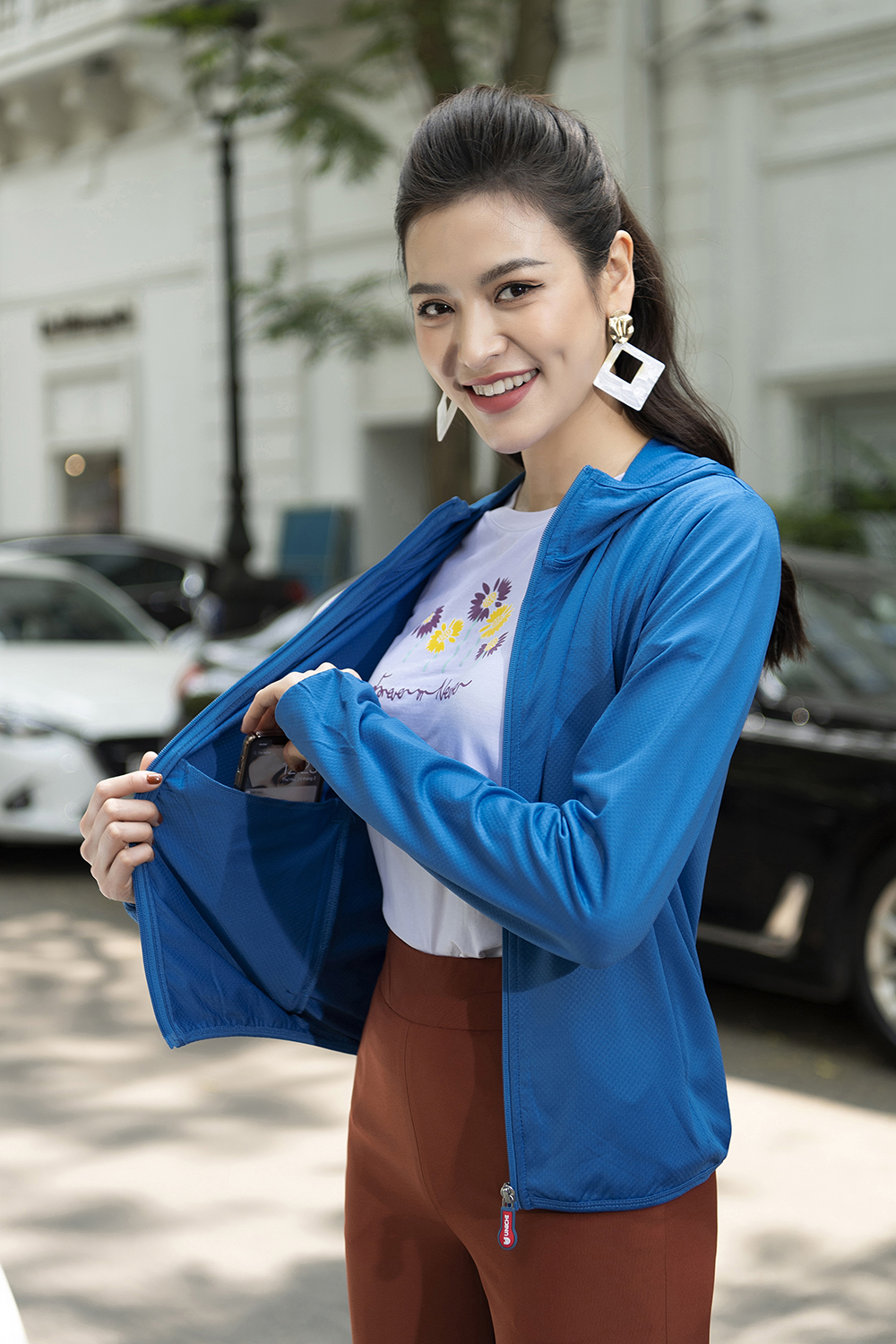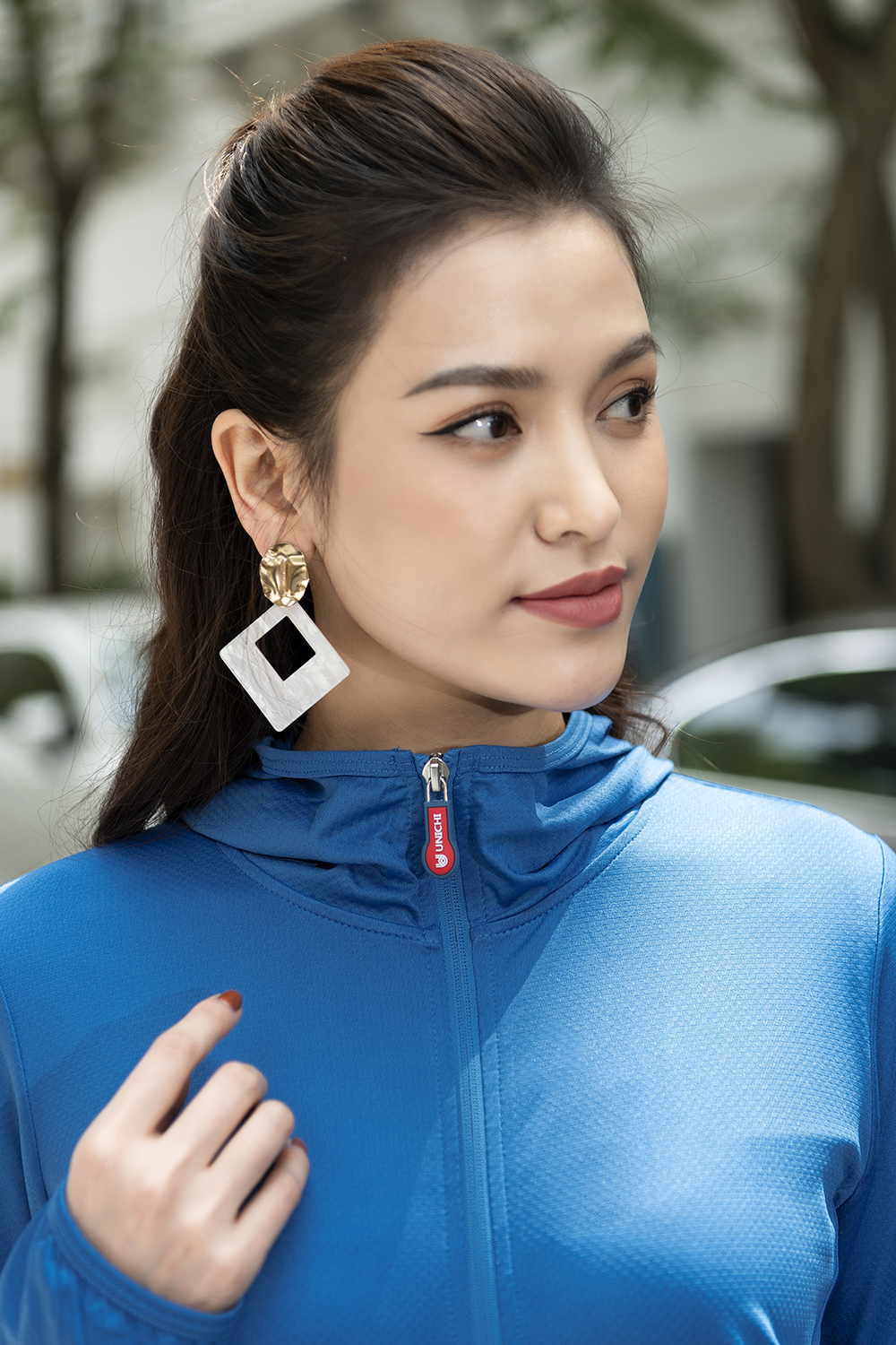 - Tay áo dài che hết mu bàn tay, áo có mũ kéo khóa che kín đầu và cổ vừa chống nắng tối ưu vừa cực kì thời thượng .