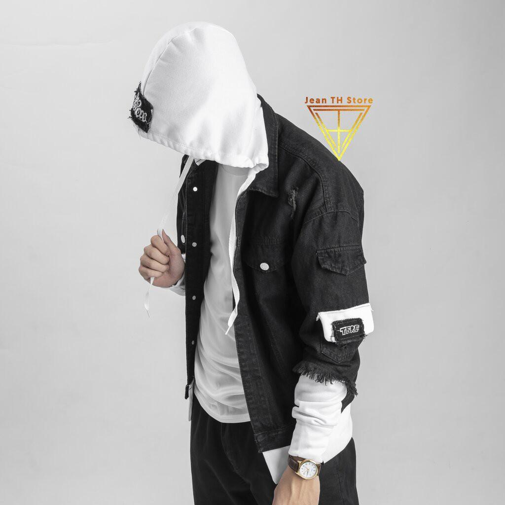 ✨Áo khoác jean nam đen phối nón nỉ trắng cao cấp phong cách trẻ trung