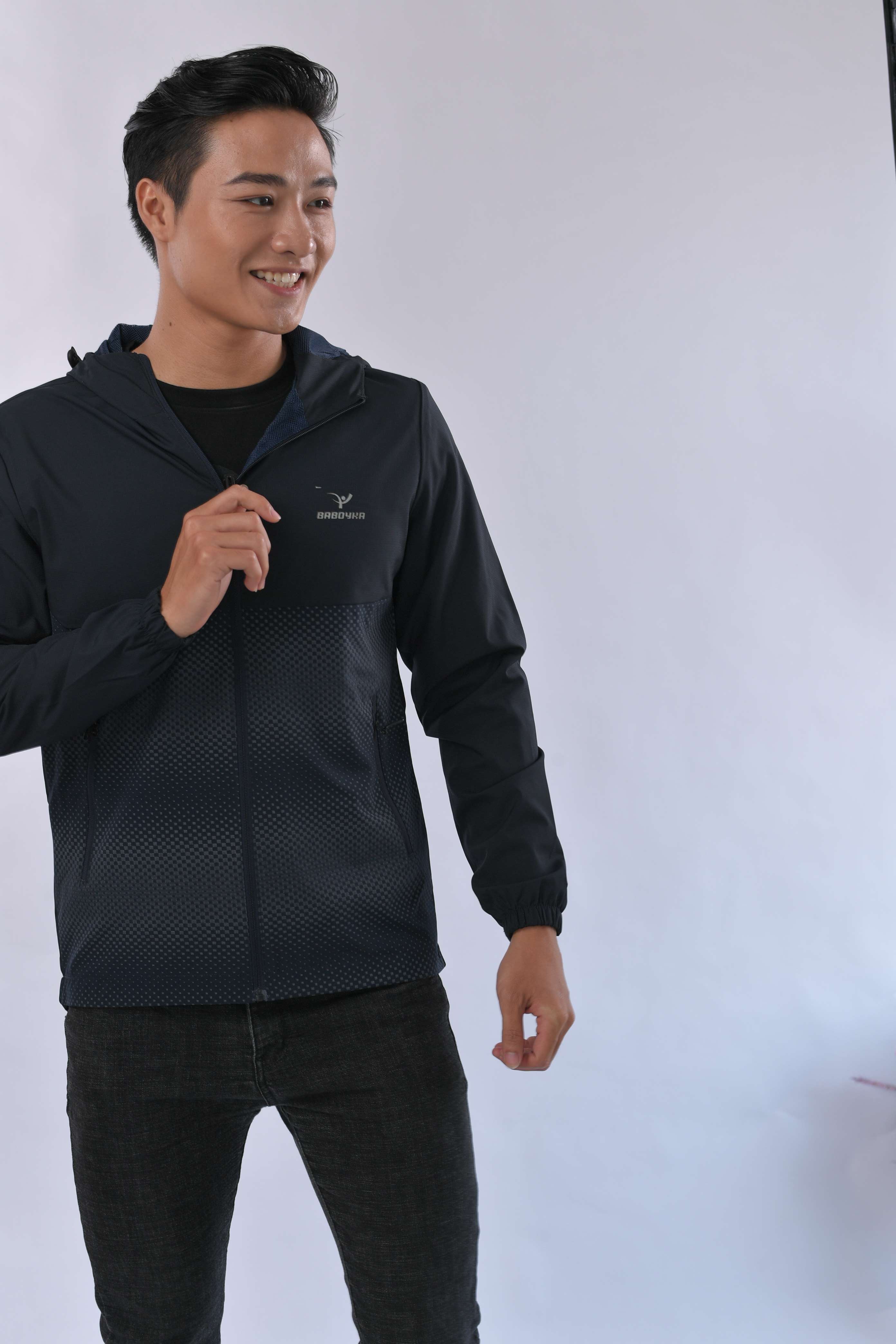 Áo khoác gió hai lớp baboyka phối vải in phản quang thân dưới mang lại cho người mặc nét khỏe mạnh năng động. Mỗi một màu cơ bản của sản phẩm đều có 3 lựa chọn họa tiết phản quang phối thân dưới gồm: Họa tiết hình vuông, họa tiết sước, và họa tiết đường tròn đồng tâm. Đây đều là cá họa tiết đại diện cho các môn thể thao thành tích cao. Khi bạn lựa trọn áo khoác giáo baboyka này có nghĩa bạn là người yêu thích thể thao.