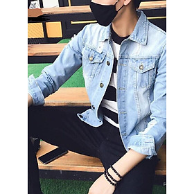 Thông tin chi tiết của sản phẩm áo khoác jean nam màu xanh cơ bản cào xước - Xuất xứ: Việt Nam - Chất liệu : Jean dệt cực chuẩn, không nhăn, có độ bền