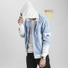 ✨Áo khoác jean xanh phối nón nỉ trắng cao cấp, áo khoác bò phối mũ trẻ trung năng động
